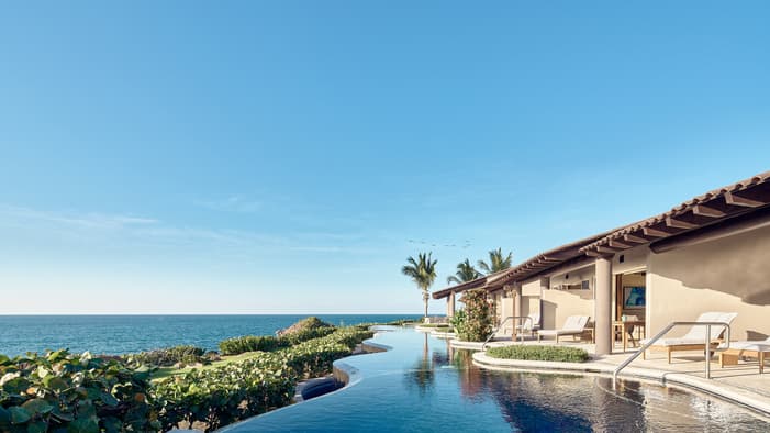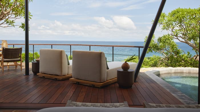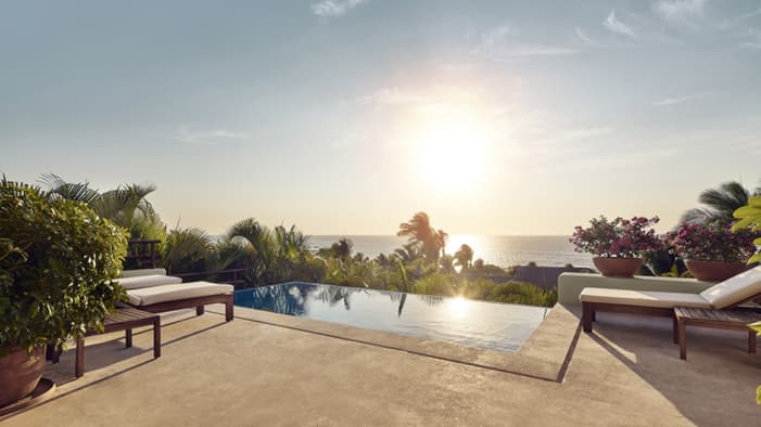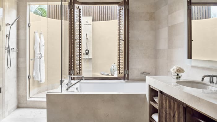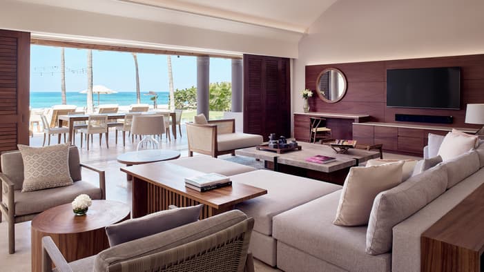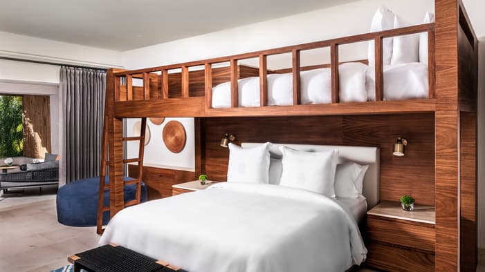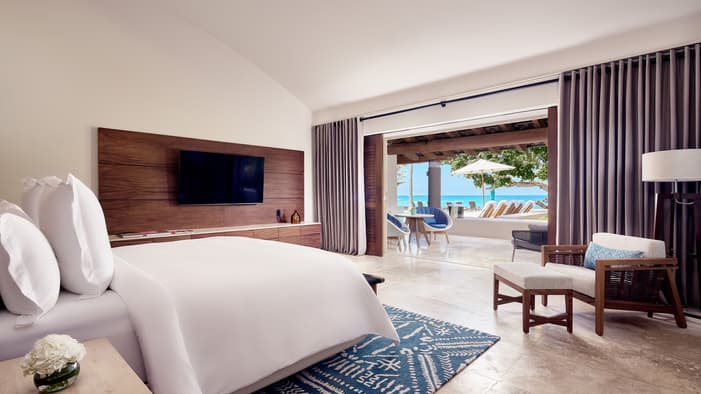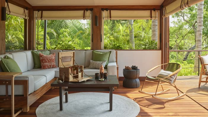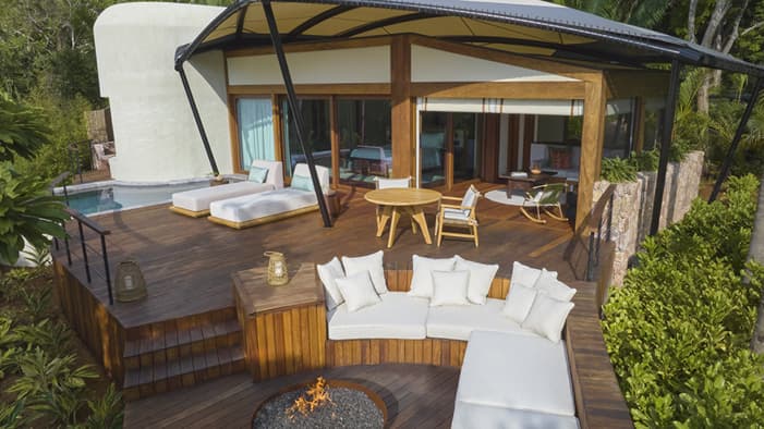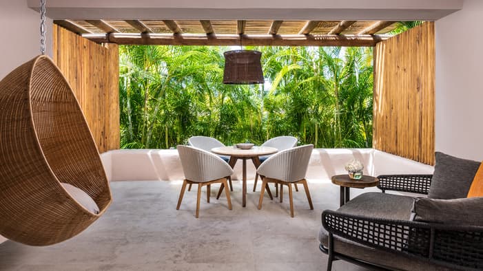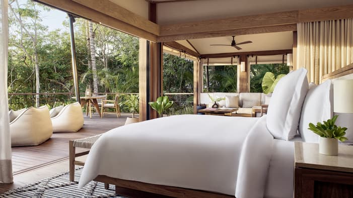 Descubra 15 alojamientos independientes de lujo, estilo bungalow, en nuestro resort hermano adyacente, Naviva®, A Four Four Seasons Resort. Rodeado por un exuberante bosque, cada bungalow integra armoniosamente espacios interiores y exteriores, con una amplia terraza y una piscina privada.