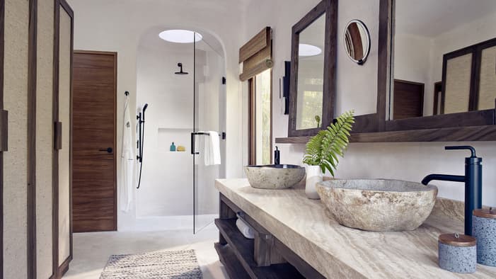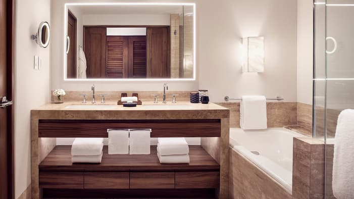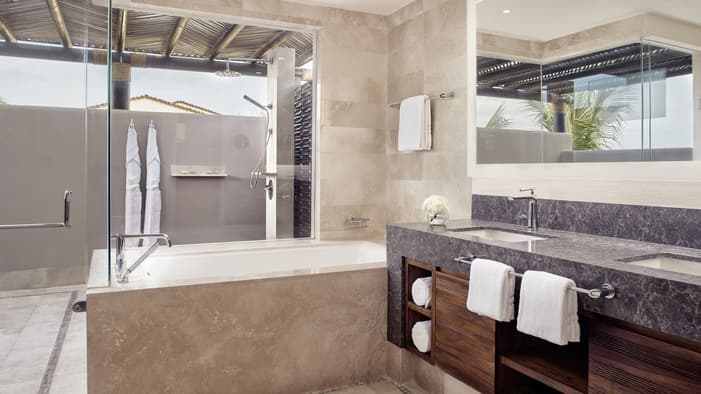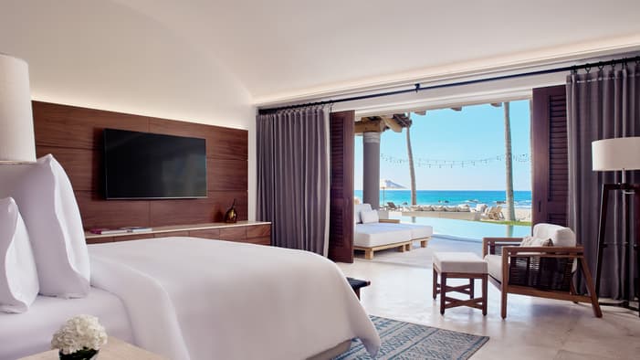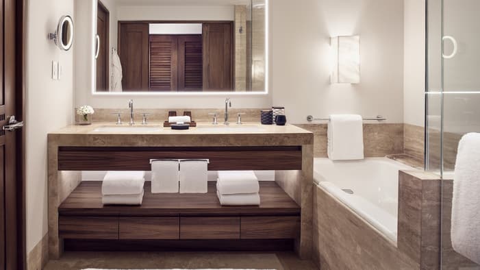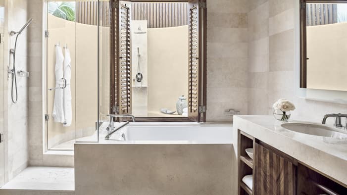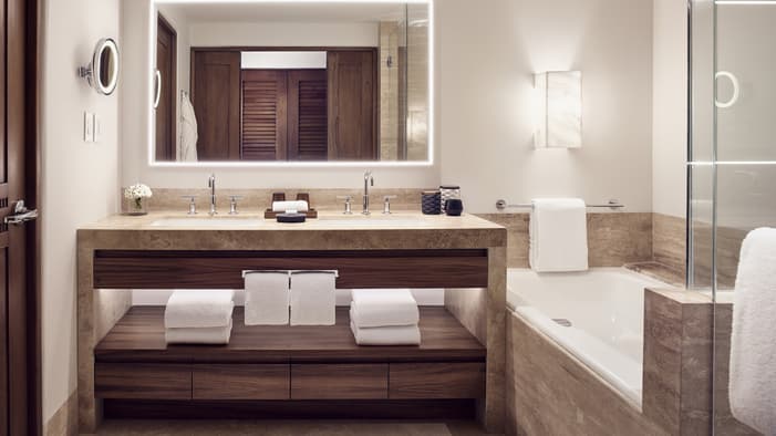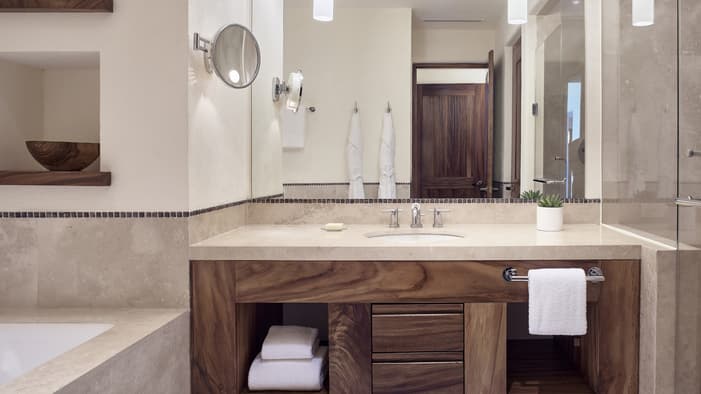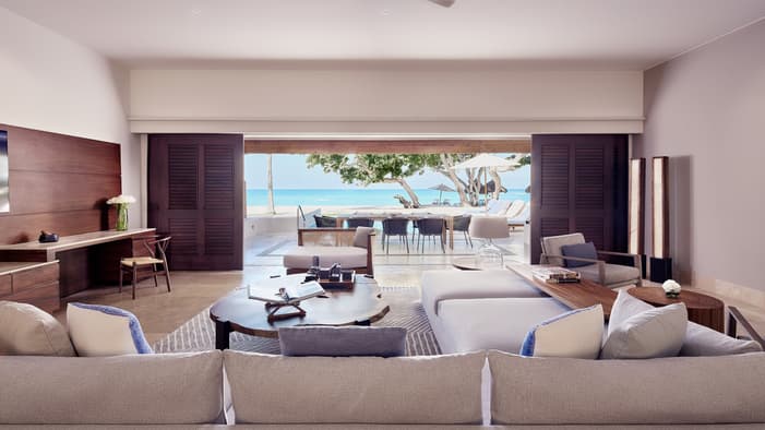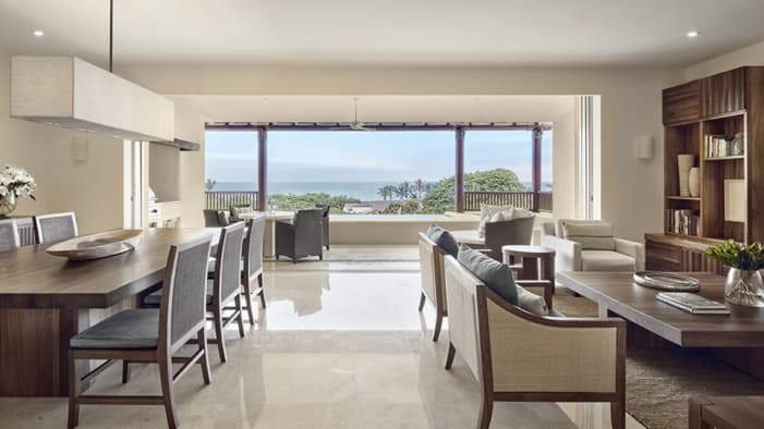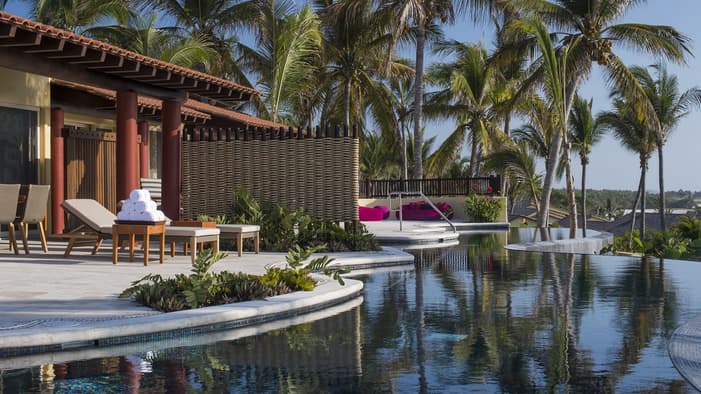 Descubra 15 alojamientos independientes de lujo, estilo bungalow, en nuestro resort hermano adyacente, Naviva®, A Four Four Seasons Resort. Rodeado por un exuberante bosque, cada bungalow integra armoniosamente espacios interiores y exteriores, con una amplia terraza y una piscina privada.
