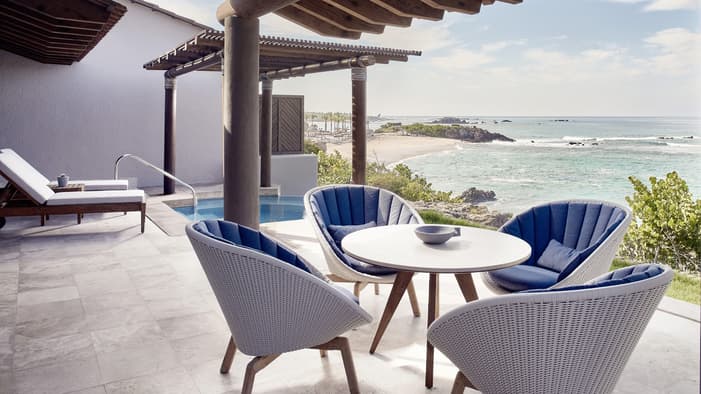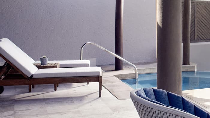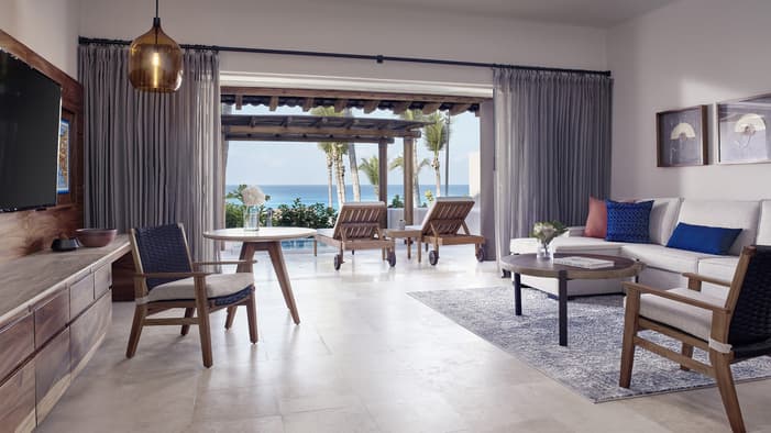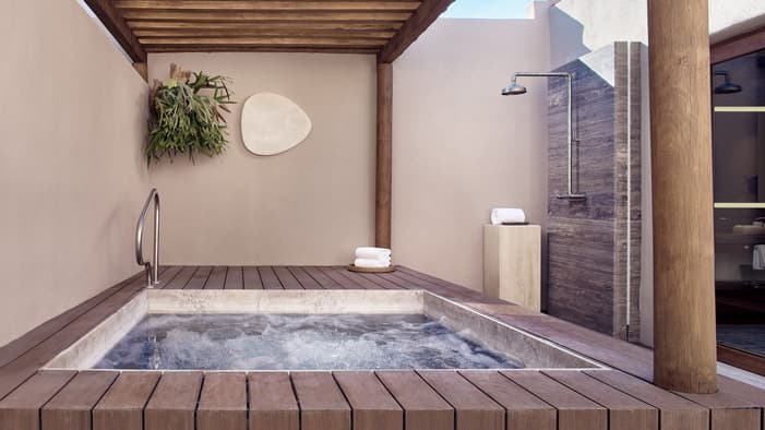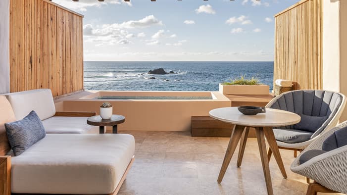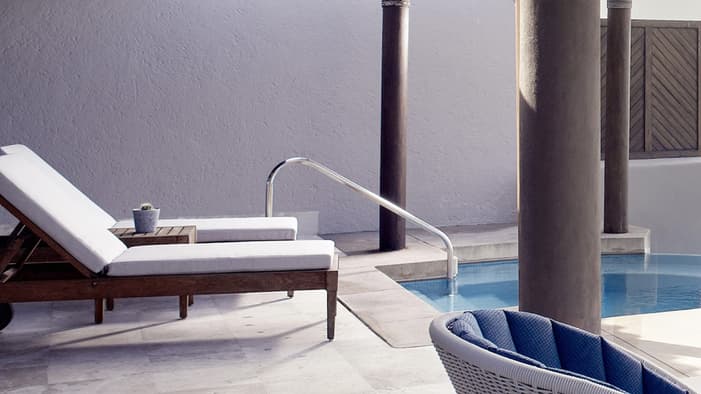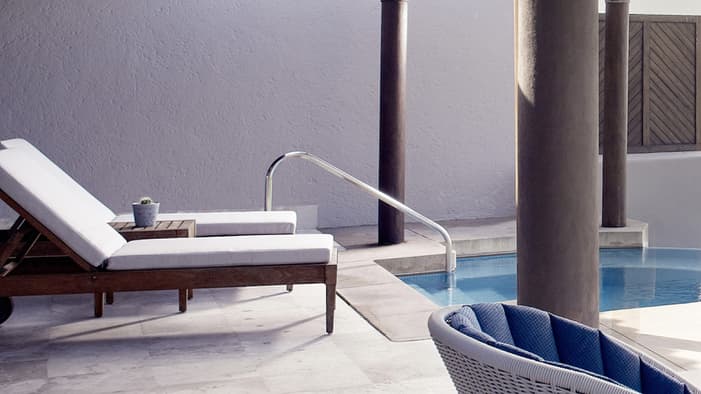 Our newly renovated, spacious and modern suites with living rooms, private terraces and plunge pools are ideal for extra space and privacy: Nuestras espaciosas y modernas suites recientemente renovadas con salas de estar, terrazas privadas y piscinas de inmersión son ideales para más espacio y privacidad.