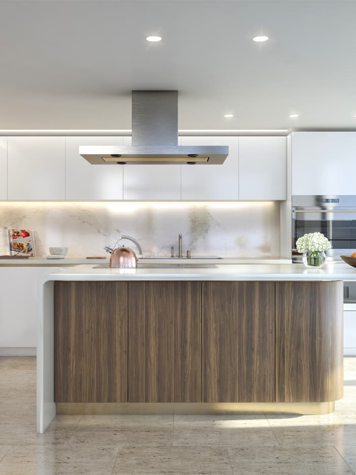 Designer master bedrooms feature soaring ceilings and a refreshing colour palette that creates a relaxed but refined aesthetic, while floor-to-ceiling windows open effortlessly onto furnished private terraces.