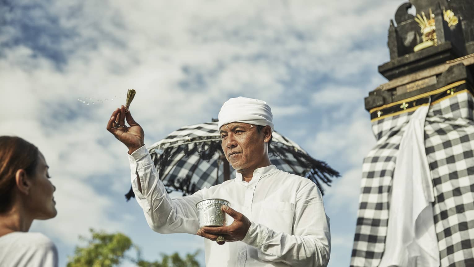 Begin your journey in balance with a traditional blessing from Ajik Ngurah, an ordained Balinese-Hindu priest, traditional healer, and meditation practitioner. The ceremony begins with a prayer in our resort temple, where holy water is sprinkled onto your head to purify body and soul – a powerful spiritual experience that connects you with the island’s sacred traditions.
