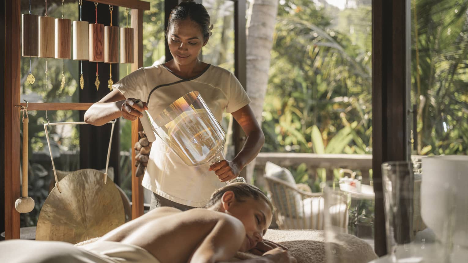Let the island’s sacred energies envelop you as you reconnect with nature in this spiritual cleansing ritual combining several traditional healing techniques into one treatment. Experience a warming toe-to-crown massage with restorative Indonesian moss agate as traditional instruments create soothing sounds and local herbs emit calming aromas.
