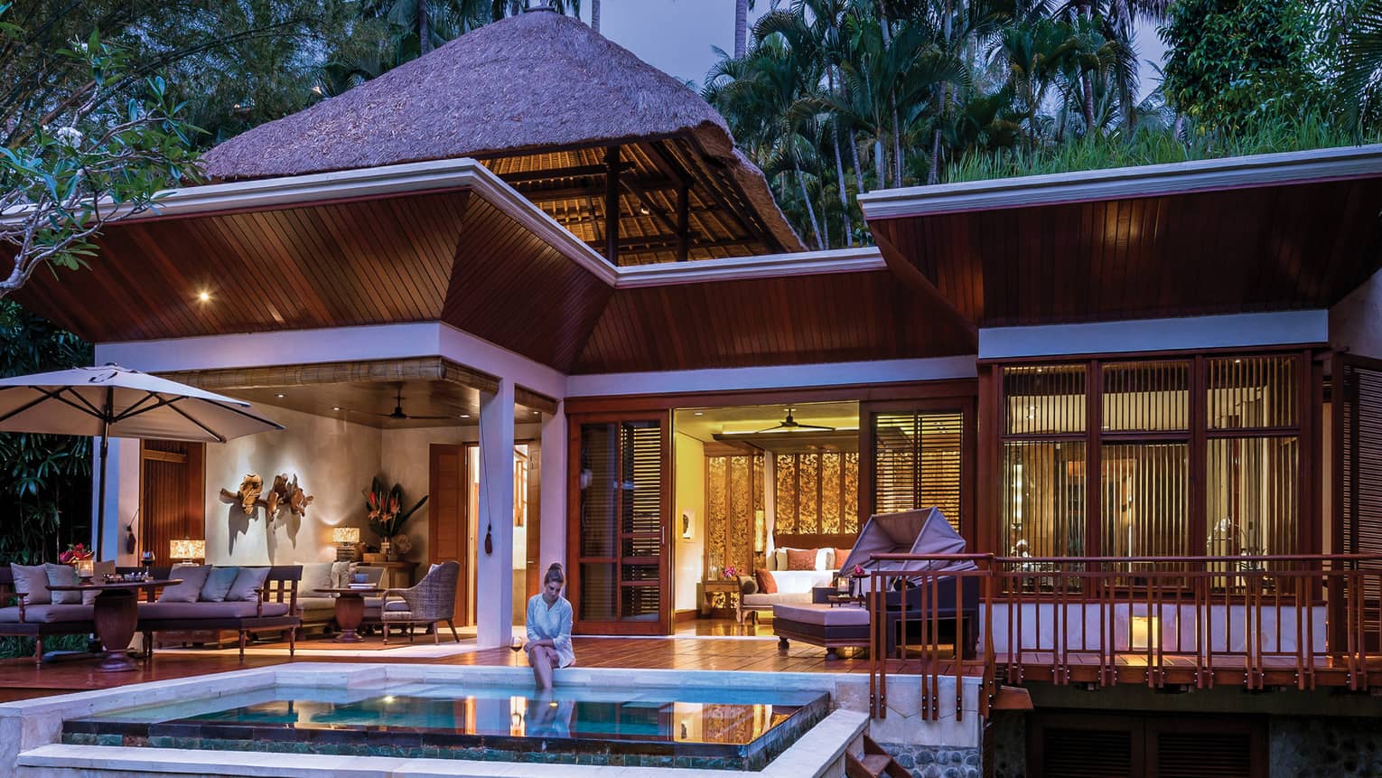 Nestled among cascades of tropical gardens along three miles of sandy coastline, this idyllic beach resort offers a glimpse of calm Jimbaran Bay around every corner. Like an authentic courtyard home, your one-bedroom luxury ocean villa features carved stone walls and a thatch roof along with its own private pool and open-air bale, ideal for relaxing and gazing out over the water. Step back in time as you explore the grounds, intricately designed to resemble a Balinese village with its winding lanes and traditionally inspired architecture.