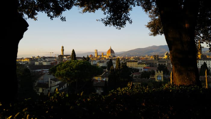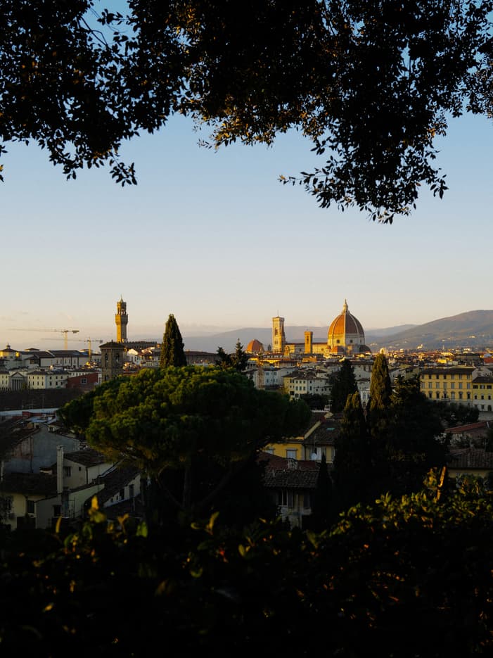 Discover the winter magic of our Gherardesca Garden, where serene pathways and glowing lights reveal Florence at its most enchanting.