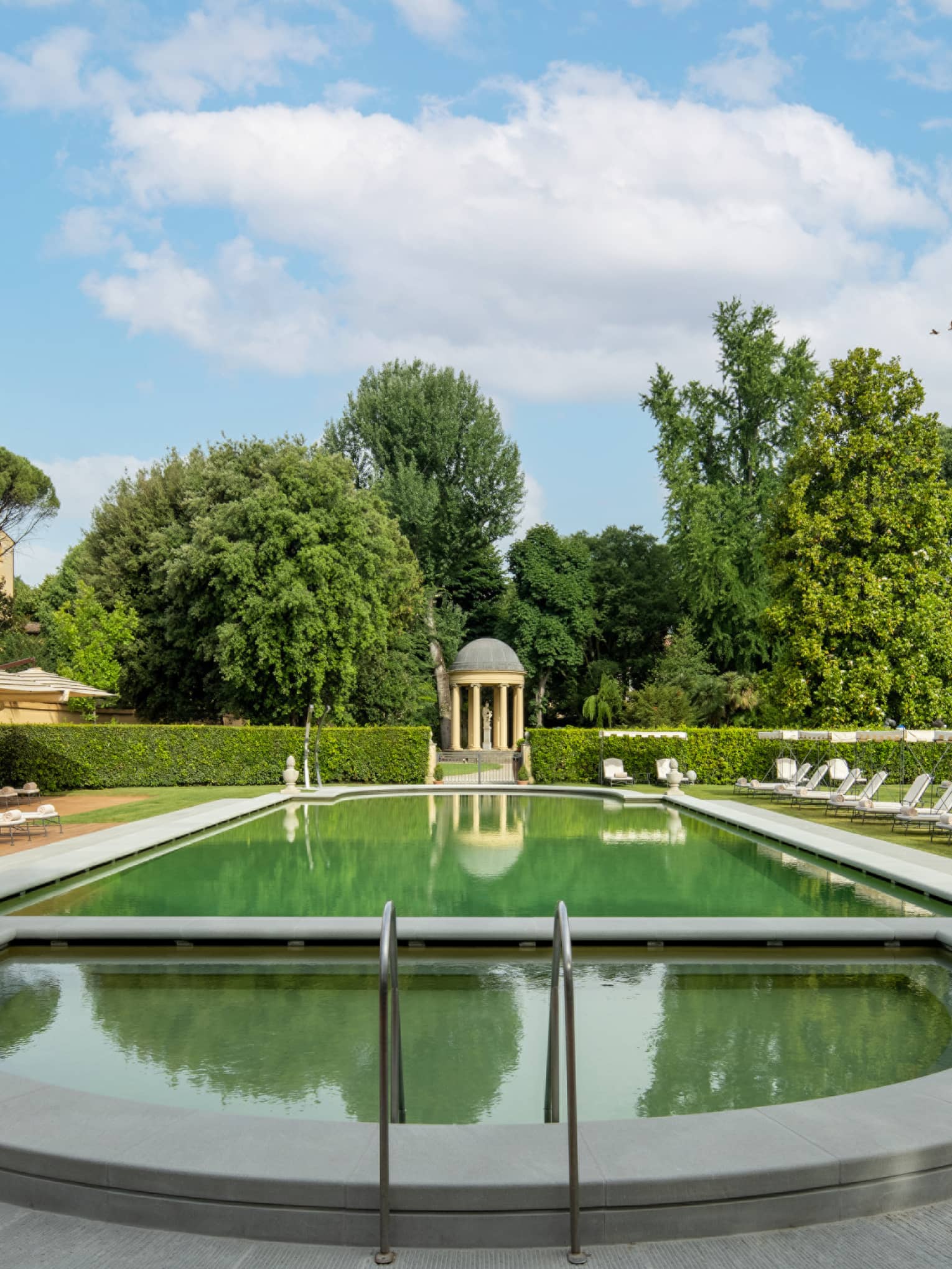 Lounge by our elegant outdoor pool, a serene retreat in the heart of Florence. Enjoy a refreshing swim or sip cocktails by the sun-drenched terrace, surrounded by the beauty of our private gardens.