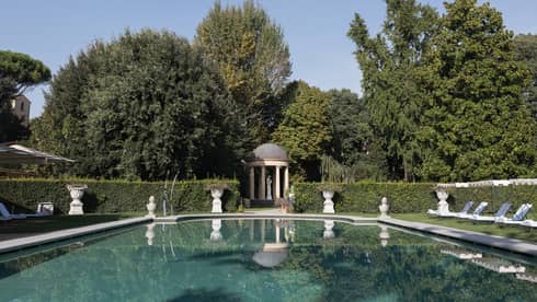 Four Seasons Hotel Firenze offers a spacious outdoor swimming pool, ideal for leisurely dips and sun-soaked afternoons, all surrounded by the lush beauty of the Gherardesca Garden.