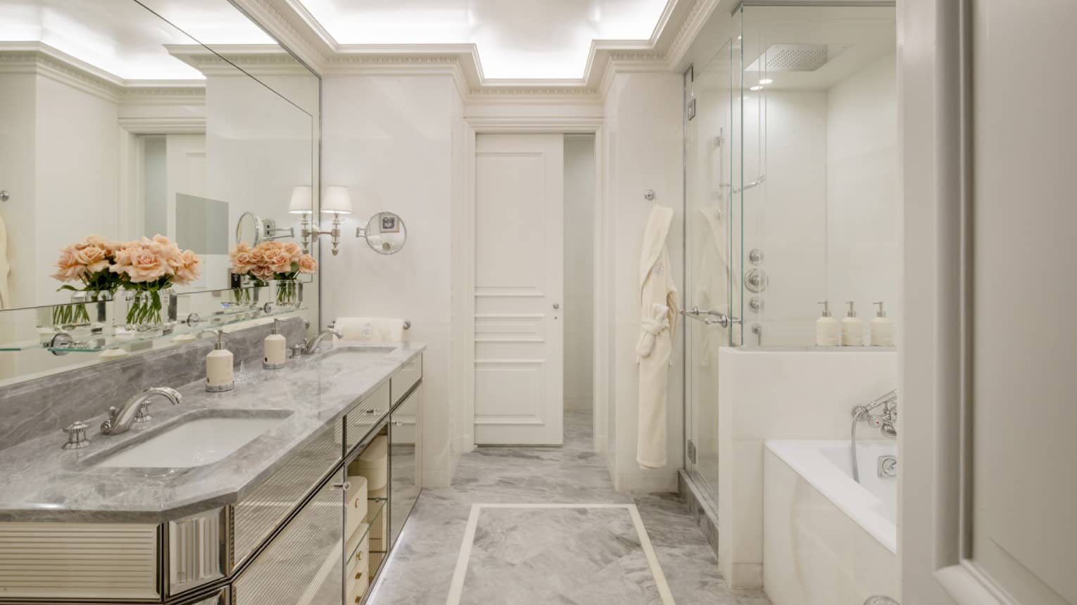 Salle de bain en marbre entièrement équipée vasque simple ou double