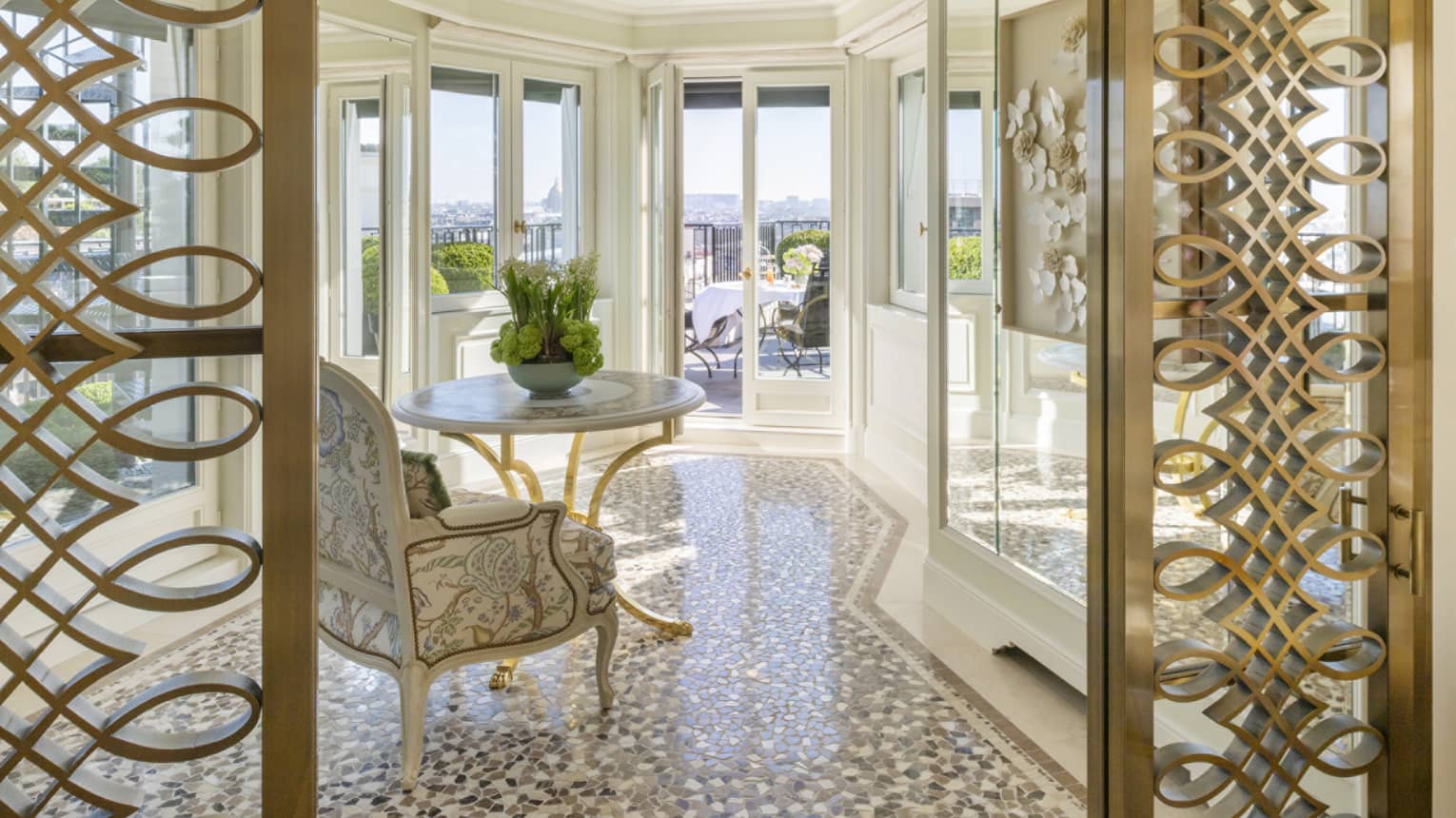 Équipements sophistiquésService en cristal de Baccarat, écran plasma dissimulé derrière un miroir sans tain, bibliothèque remplie d'intrigants livres anciens, bar privé réfrigéré et stores actionnés à distance : voici quelques exemples de ce qui fera de votre séjour à Paris un enchantement.