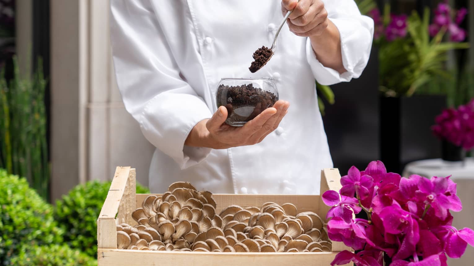 - Gestion d’un potager de 1 800 mètres carrés à proximité de Paris selon des pratiques durables, sans produits chimiques et biodynamiques, créant un écosystème favorable aux plantes et aux animaux, et ce depuis plus de dix ans. Les fruits et légumes qui y sont récoltés sont ensuite servis au restaurant Le George