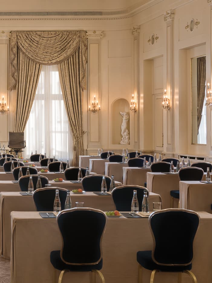 Living HistoryEach of our six stately salons – all conveniently located on the first floor – combine the grandeur of our Hotel’s history with unrivaled views of Lake Geneva and modern technology. The outdoor terraces and abundant natural light will keep everyone in good spirits.