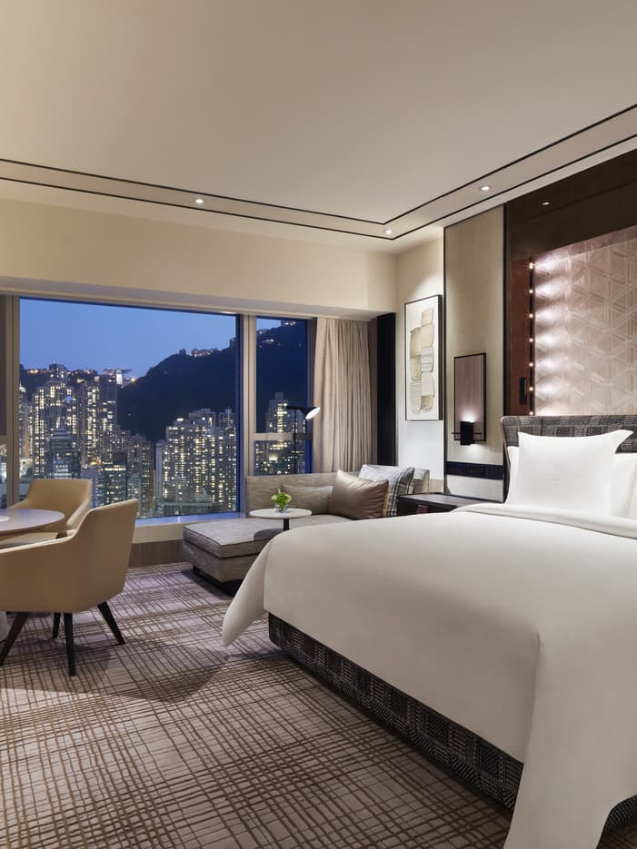 Wake up to panoramic views of Victoria Peak and the vibrant Hong Kong skyline in your Deluxe Peak-View Room. Thoughtfully designed to reflect the city’s contemporary spirit, these spacious accommodations feature elegant Chinese-inspired motifs, curated natural textures and a versatile work-dining space – perfect for both relaxing and reconnecting. Your Hong Kong room with a view awaits.