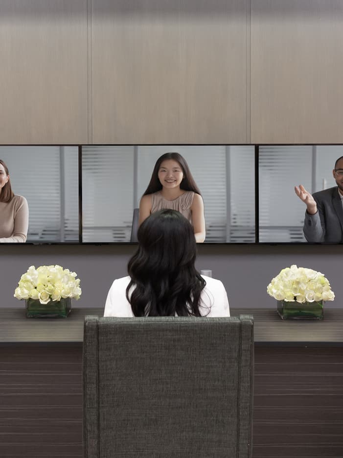 Hybrid MeetingsMeet the new normal with confidence through our state-of-the-art technology, including Logitech video conference camera with external speaker and LED TV.
