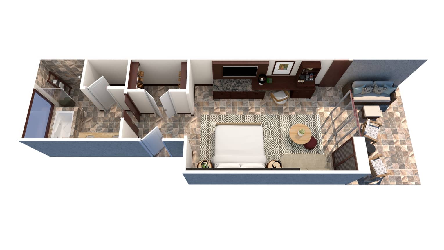 Set on the upper floors of our two-storey bungalows, each room comes with a private balcony perfect for taking in the morning sun over breakfast or indulging in an evening cocktail.