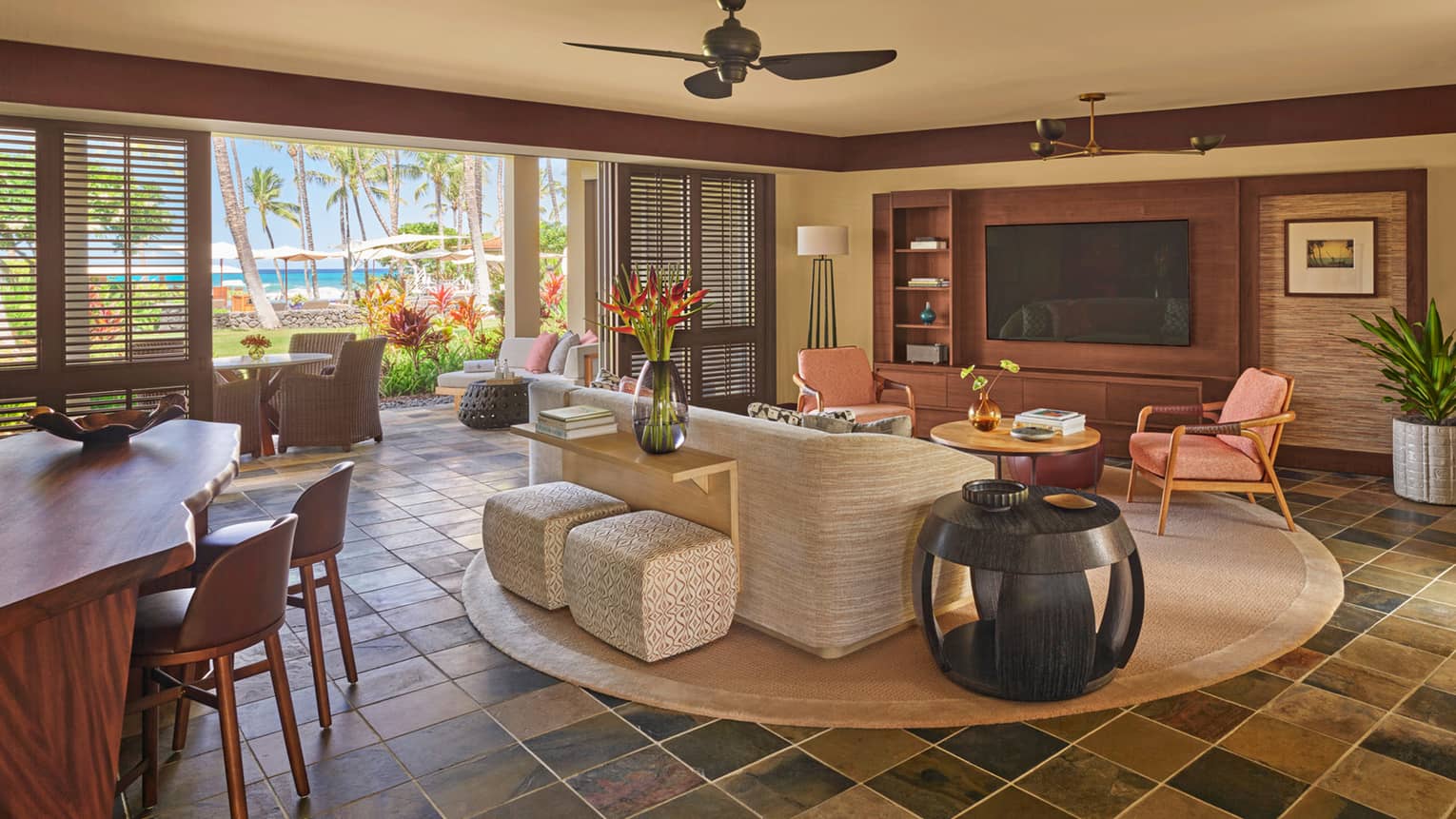 Kailani means “heavenly sea” in Hawaiian, and it’s the perfect name for a suite with views that sweep clear across the Pacific Ocean from an ideal oceanfront setting, close to the waves.