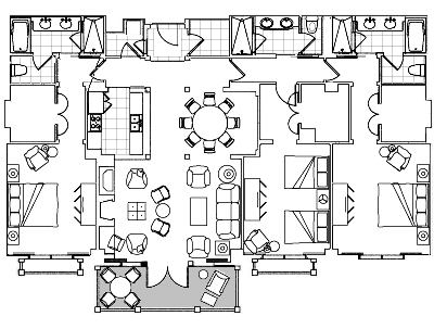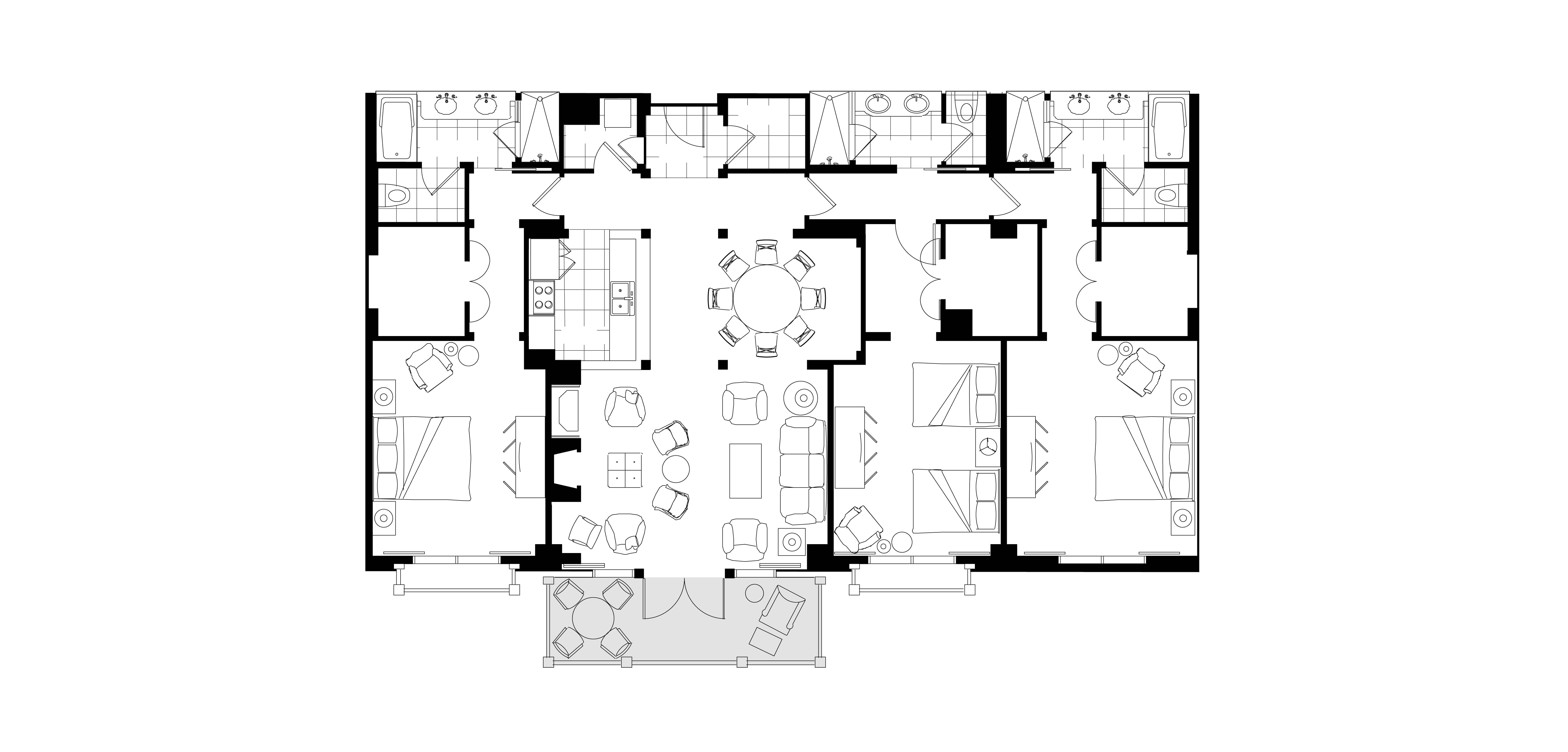 Each of these spacious residences opens to a private terrace or balcony, allowing you to bask in the beauty of our alpine setting while enjoying the comforts of home. Enjoy a fully equipped kitchen, dining room seating for eight, built-in work area and two master bedrooms.