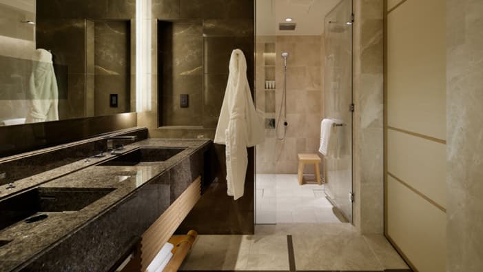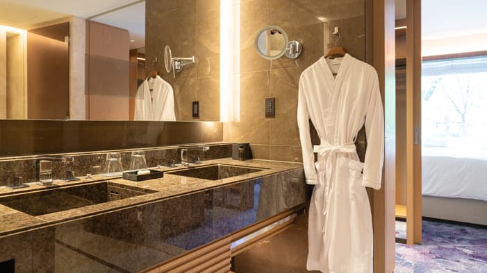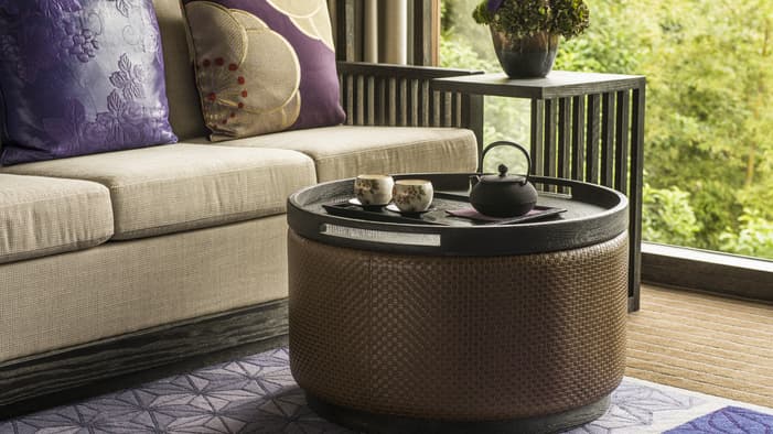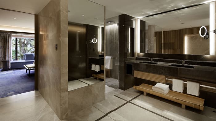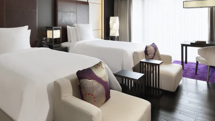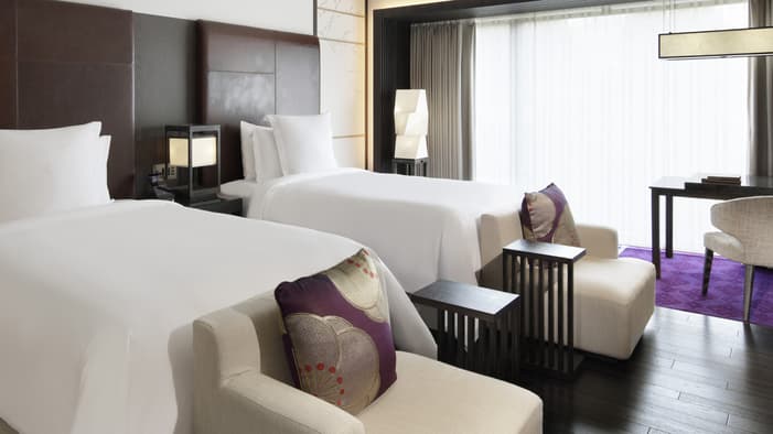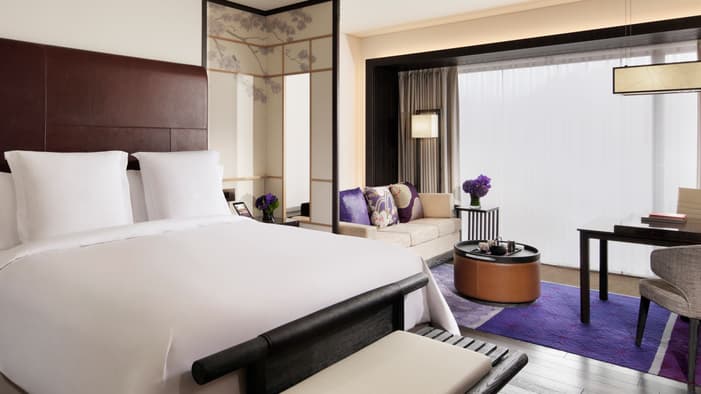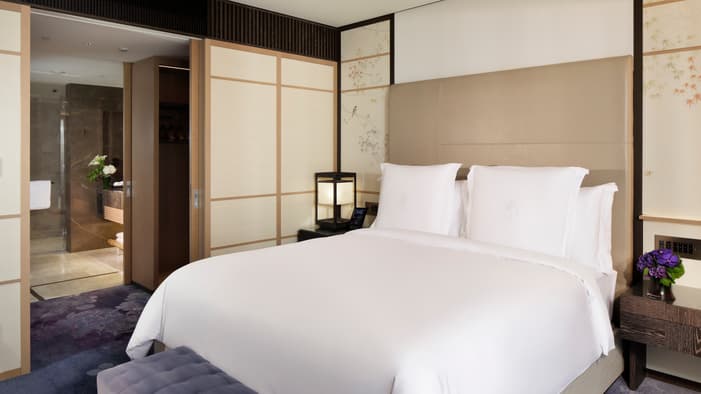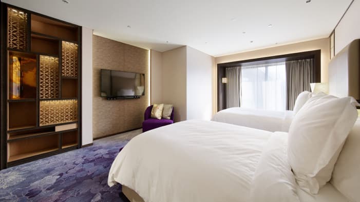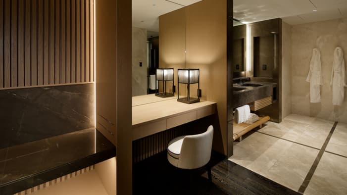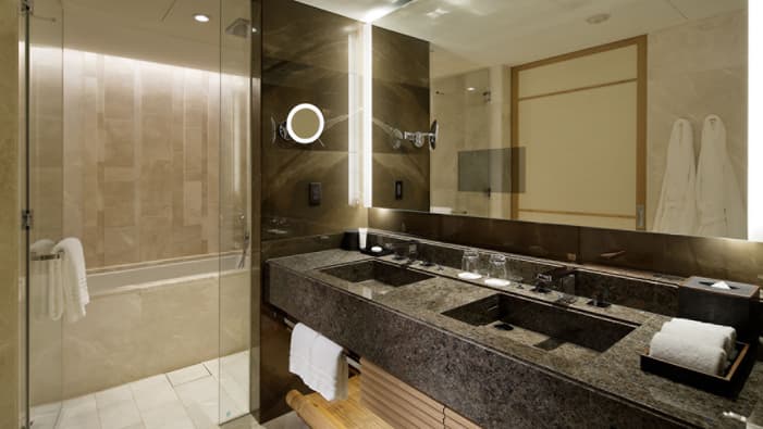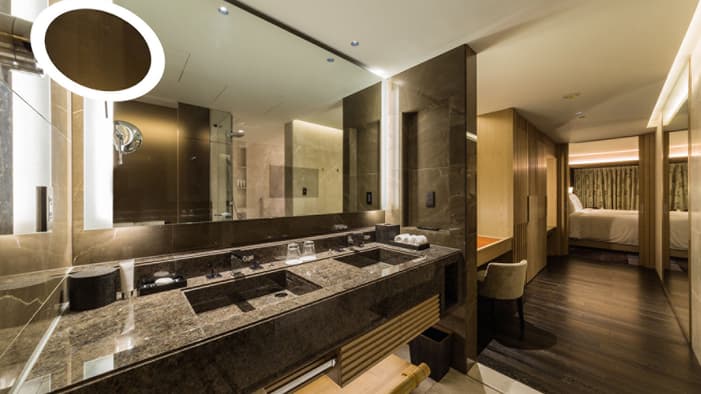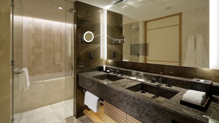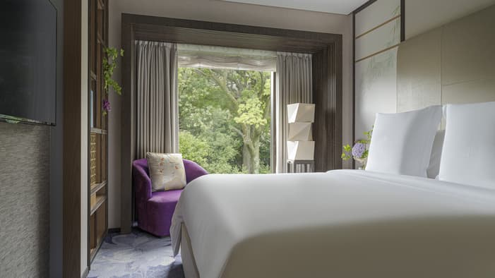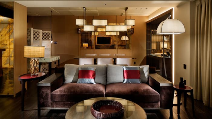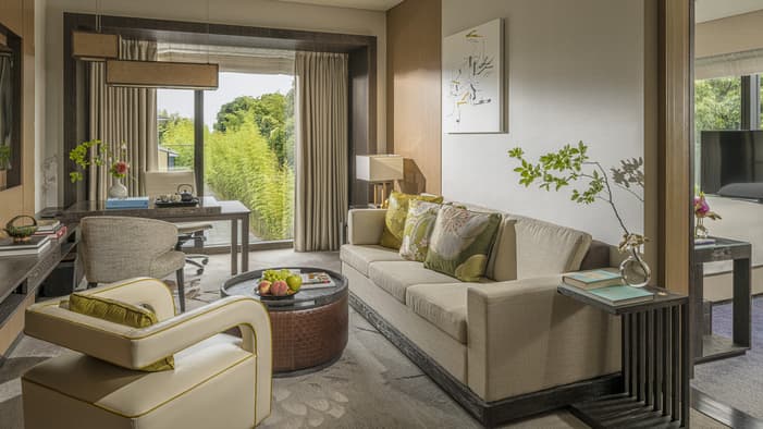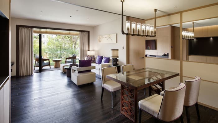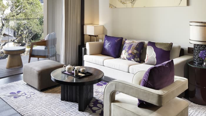 ビジネスでのご利用はもちろん、ファミリーでのご滞在にも最適な広々としたスイートは、京都でのご宿泊に理想的です。独立したリビングルームとベッドルーム、「禅」を感じさせる大理石のバスルームが備わり、庭園「積翠園」またはホテルエントランスを眺めながらゆったりとお寛ぎいただけます。