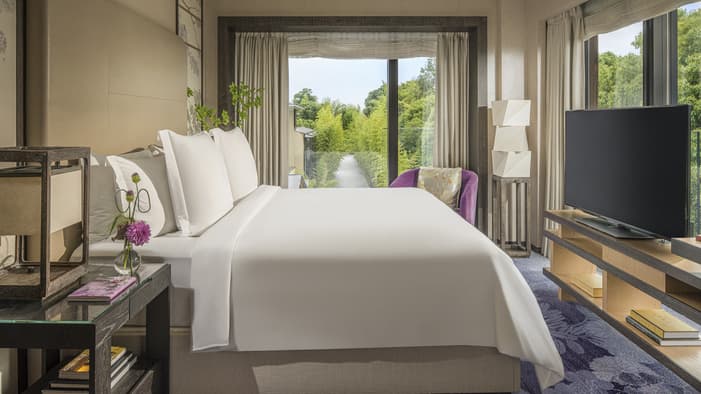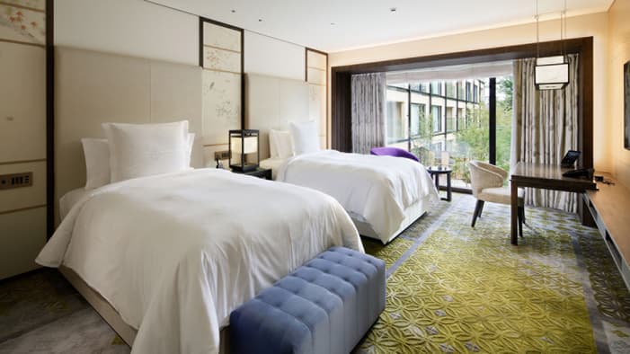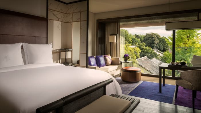 京都でのご宿泊は、伝統工芸と洗練された華やかさが融合したフォーシーズンズホテル京都で。ゲストルームやスイートは、和紙のランプや襖など職人によってこだわり抜かれた工芸品で彩られ、お部屋からは名庭「積翠園」やホテルエントランス、京都市街の眺望をお愉しみいただけます。プライバシーと心地よさにこだわったキッチン付きのレジデンシャルスイートでは、「禅」を感じさせる大理石のバスルームや様々な特典もご用意しております。カップルやご家族での旅行、またビジネスでのご滞在にも最適な、贅沢ステイをご満喫ください。