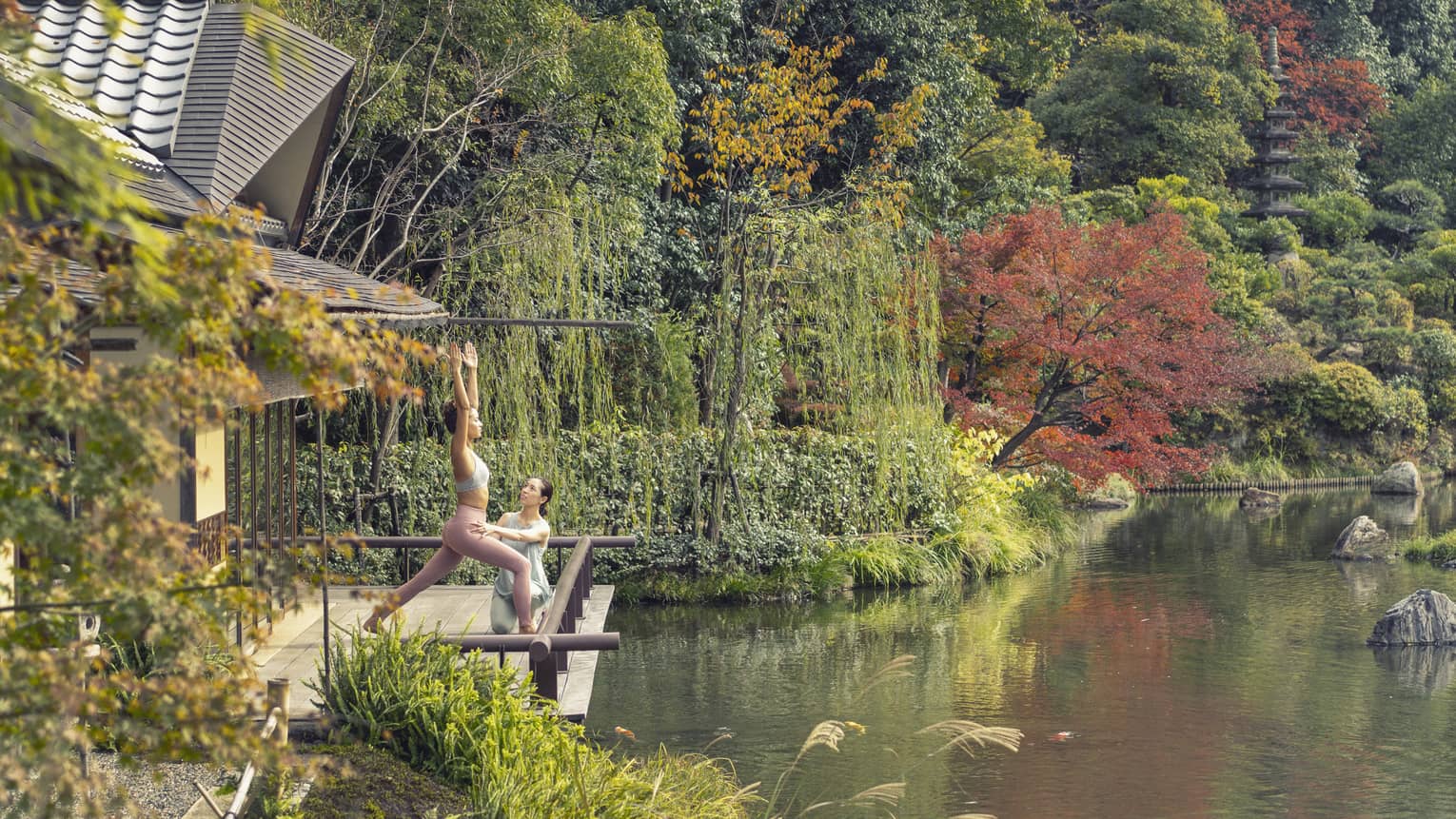 1ベッドルームスイートリビングルームとベッドルーム、竹林をイメージしたバスルームが備わった、広々としたお部屋です。マスターベッドルームには、お好みの寝心地を選べるフォーシーズンズベッドをご用意。窓一面に迫りくる日本庭園を眺めながら、スイートルームならではの優雅なひとときをお楽しみください。