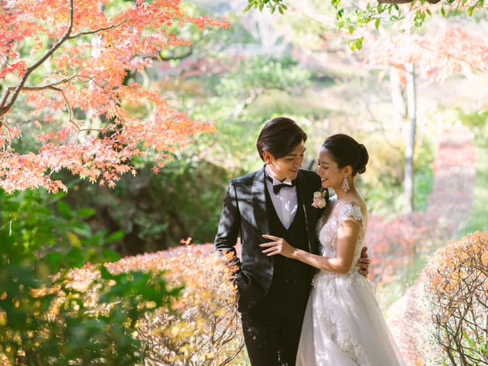 歴史ある庭園での記念撮影がついたご結納・お顔合わせプラン。