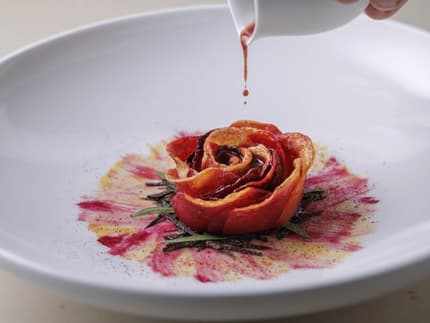 エグゼクティブ ペストリー シェフ「ゴ・エ・ミヨ2024」にてベストパティシエ賞を受賞したペストリーシェフのミケーレ・アッバテマルコは、イタリア北部ピエモンテ州モンフェッラートの活気あるマーケットからヨーロッパや日本でミシュランの星を獲得している一流のレストランまで、幼少期の頃より興味のつきない食の旅を続けております。 長年に渡って日本の食材を研究し、日本文化を学び、オリジナルのレシピをアレンジし続けています。四季、そしてそれを表す色彩を意識し、重すぎず、バランスの取れた一品を目指しています。新鮮なフルーツはもちろんのこと、和三盆、ぎゅうひ、寒天を始めとする、国内の小さな農家が生産しているプレミアムな食材を研究し、七十二候を表現した独創的な「作品」を創り上げています。
