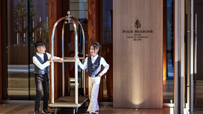 ご家族皆さまが快適にお過ごしいただけるよう、フォーシーズンズ東京大手町ではファミリー向けサービスをご提供。お子様連れ限定のご優待やキッズアメニティに加え、事前予約制でホテルのお仕事を体験できる「フォーシーズンズキッズアカデミー」もご利用いただけます。