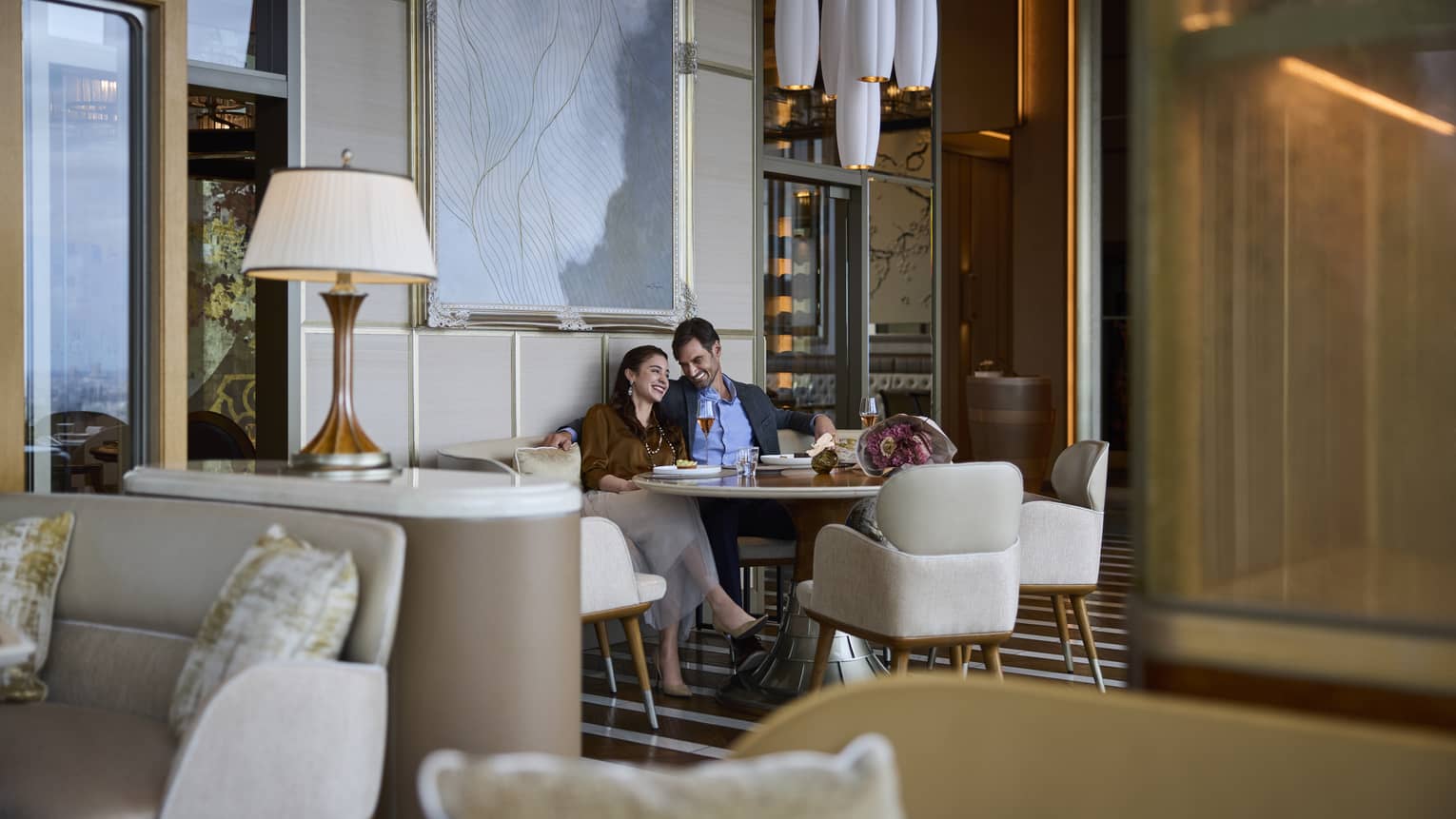 朝目覚めると、窓の外に広がる皇居御苑の美しい景色や桜の咲き誇る東京の街並みが広がります。心地よいベッドに寝そべり、いつもよりのんびりと過ごす朝のひととき。オープンコンセプトでありながら落ち着きのある空間で、大切な方と朝食を楽しんだり、ドリンクを片手に夜景を眺めたり、思い思いの時間をお過ごしいただけます。