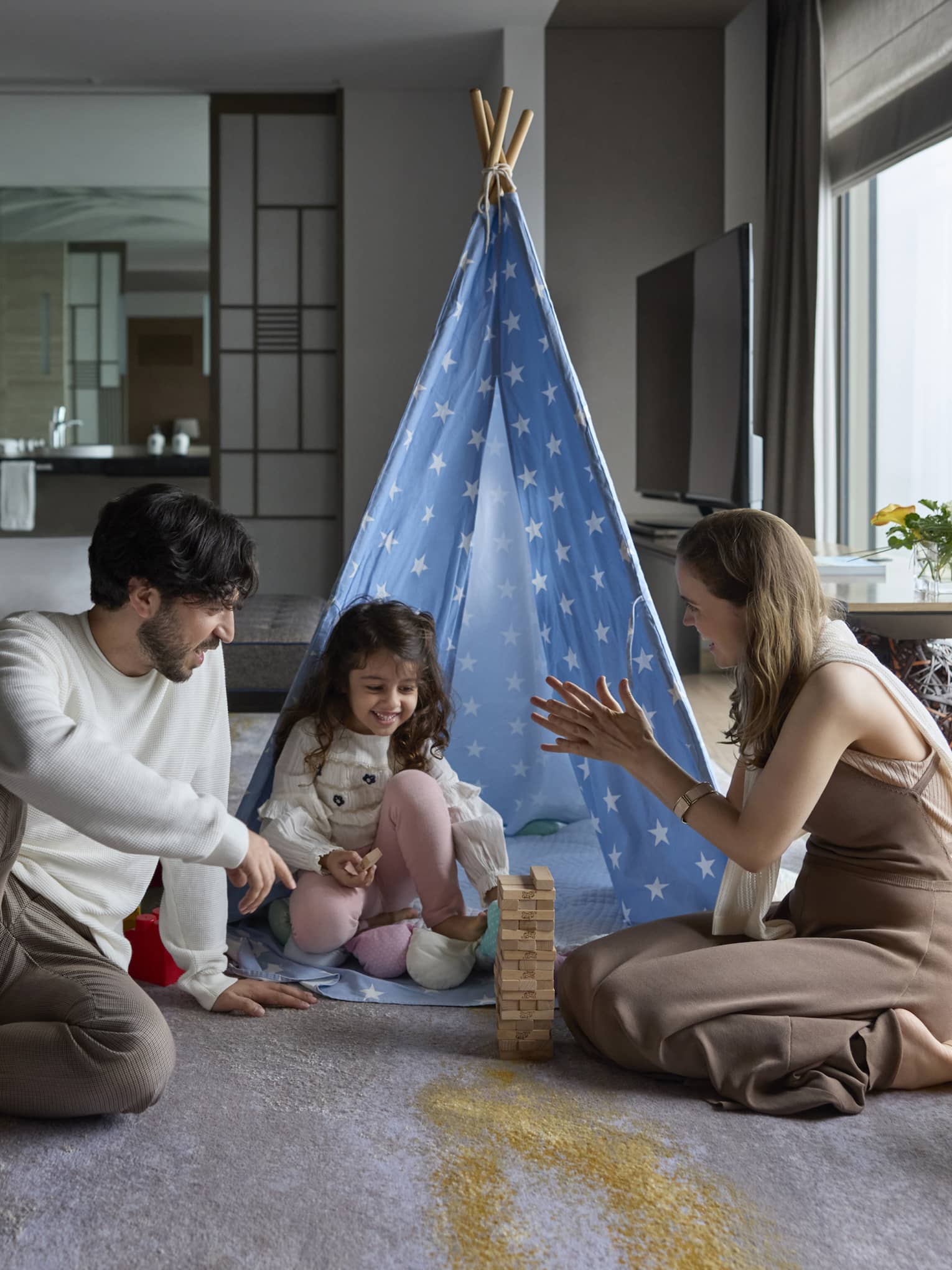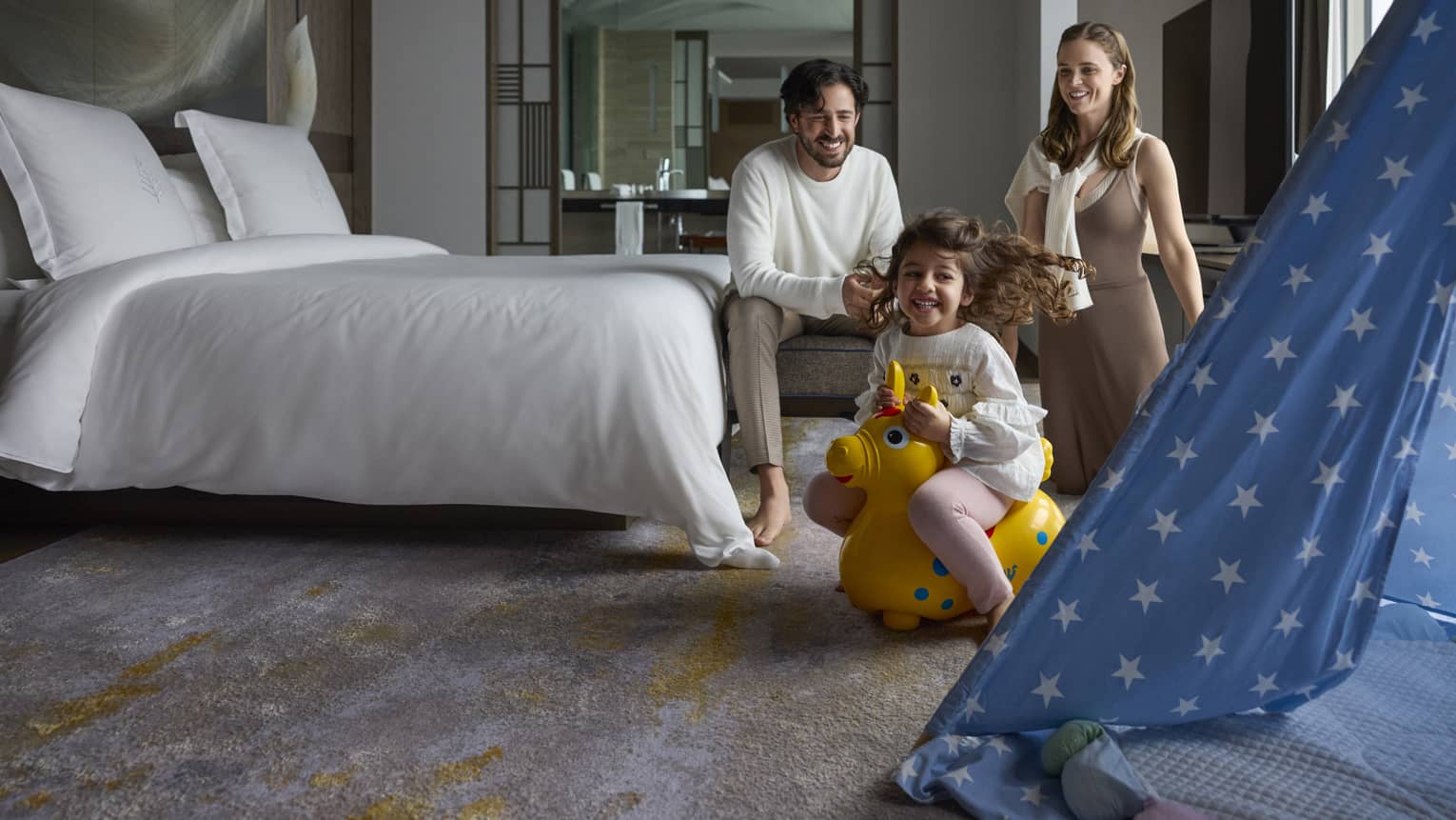 3~5歳までのお子様とご一緒にて、スイートでのご宿泊の際(プレミアルームとエグゼクティブスイートは対象外)には、お子様が楽しめるおもちゃやアメニティが詰まったキッズテントをご用意いたします。数に限りがありますので、ご希望のお客様は、ご予約時に宿泊予約課にお問合せください。