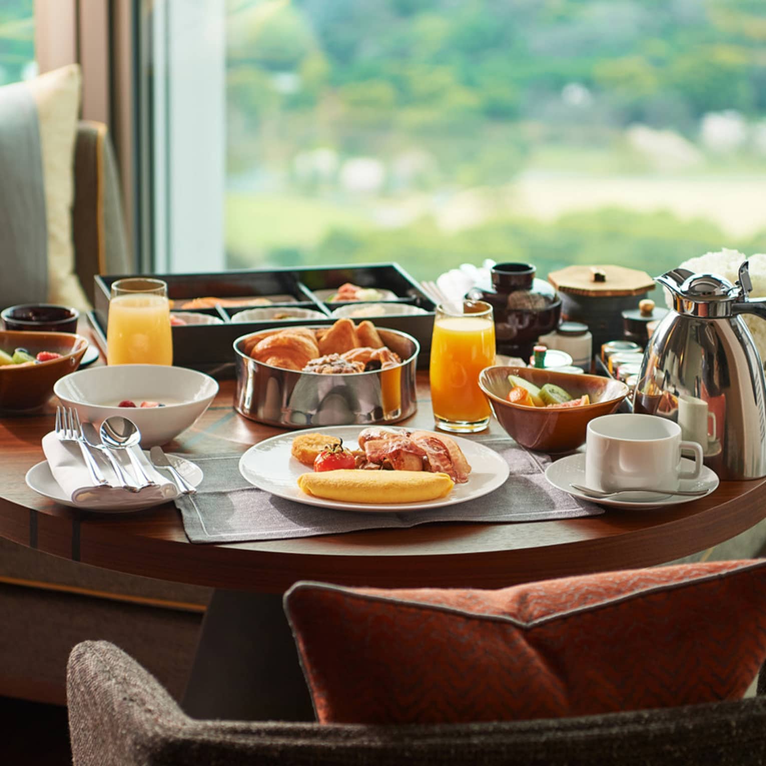 はい。ルームサービスや個室でのお食事に加え、朝日に包まれるシャンパンブレックファストや、東京を一望できるタワービル最上階でのディナーなど、特別な時間を彩るダイニング体験をお楽しみいただけます。