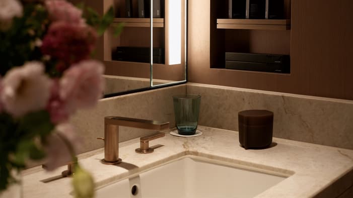 東京の中心に佇む、まるでご自身の邸宅に滞在しているようなお寛ぎを感じていただけます。リビングとベッドルームが独立されておりますので、開放感あふれる設えのなかで心安らぐひとときをお過ごしいただけます。記念日やロマンティックなご滞在など、特別な日のひとときを優雅にお愉しみください。