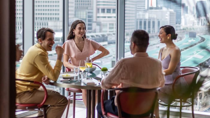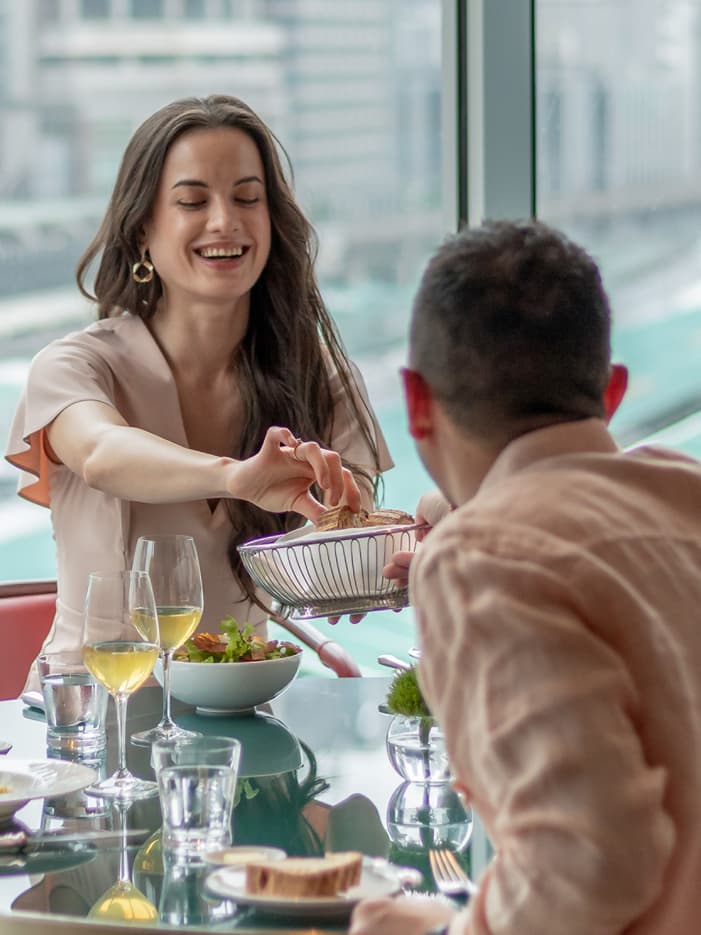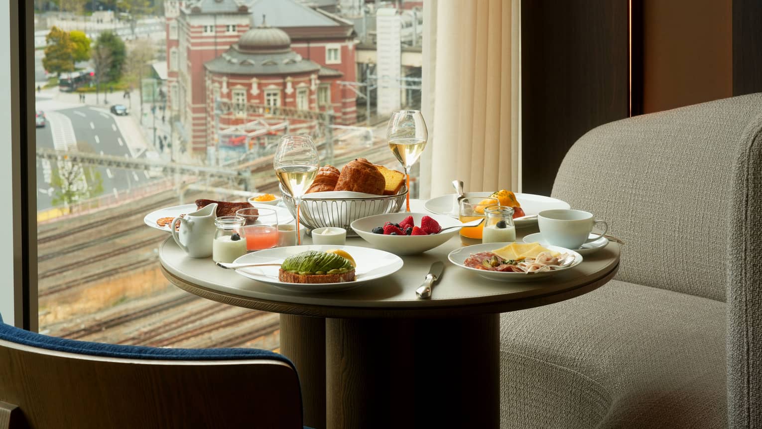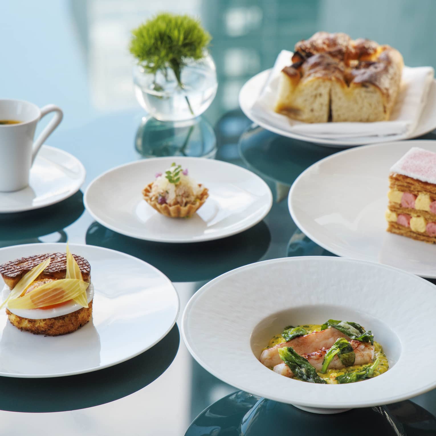 「MAISON MARUNOUCHI(メゾン マルノウチ)」の壁一面に広がる窓の向こうには、赤煉瓦の東京駅と行き交う新幹線が織りなす、夏の都会の景色が広がります。旬の食材を取り入れたシーズナルメニューに、暑さを忘れさせるフレッシュなカクテルをご用意。やわらかな夏の光が差し込む開放的な空間で、爽やかな季節の味わいをお愉しみください。