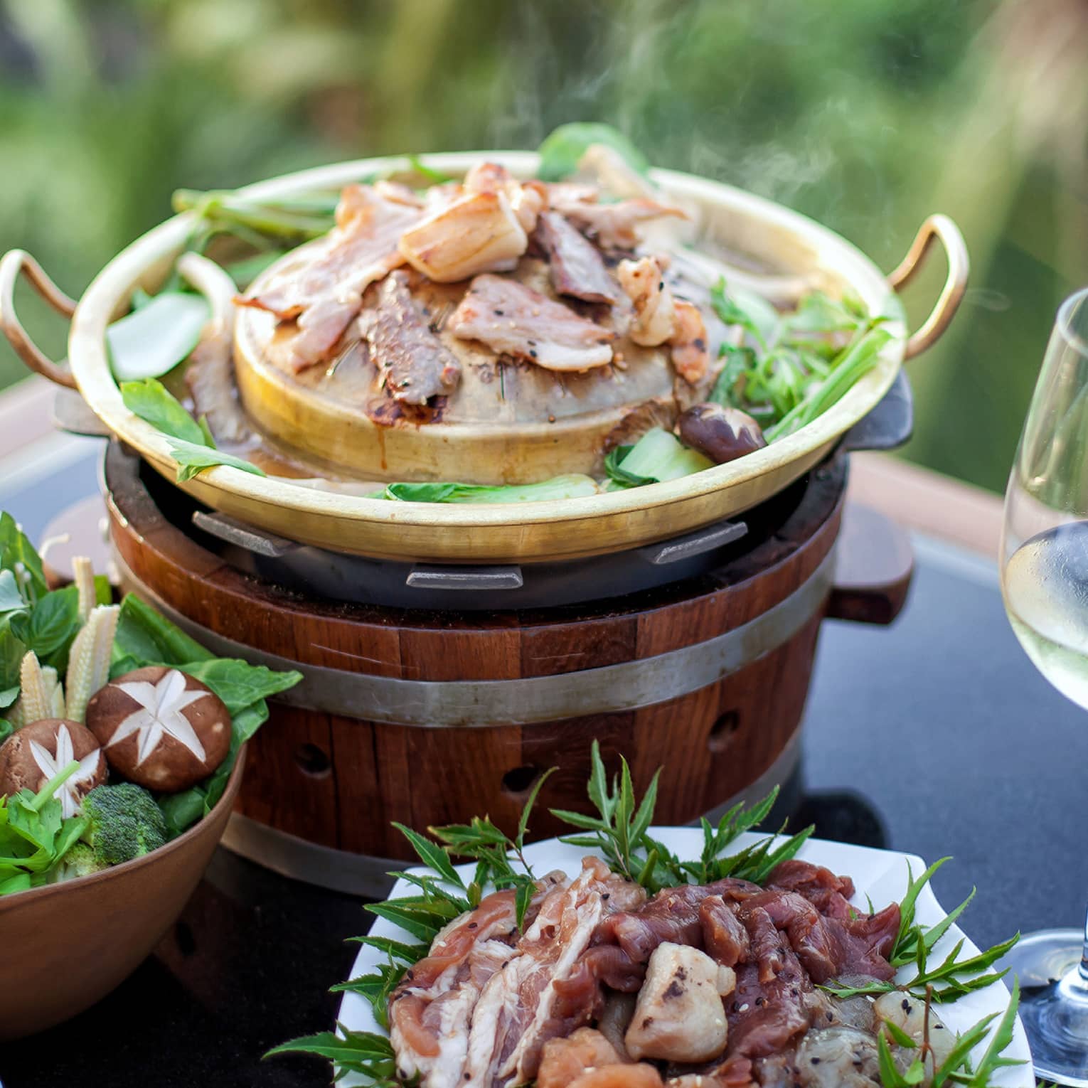 Whether it’s chilled Champagne at midnight or pad thai at noon, our In-Villa Dining menu takes room service to a new level. Or host a private barbecue, with our chef manning the grill.