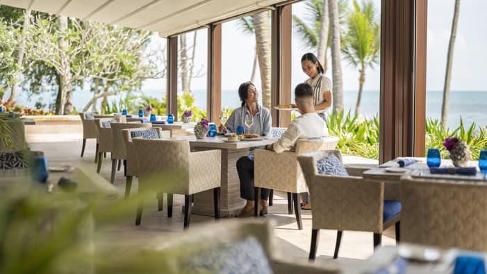 Sink into an oversized sofa and take in the fresh island breezes with a pre-dinner selection from our curated wine list, or try a unique pairing of Thai wines and canapés.