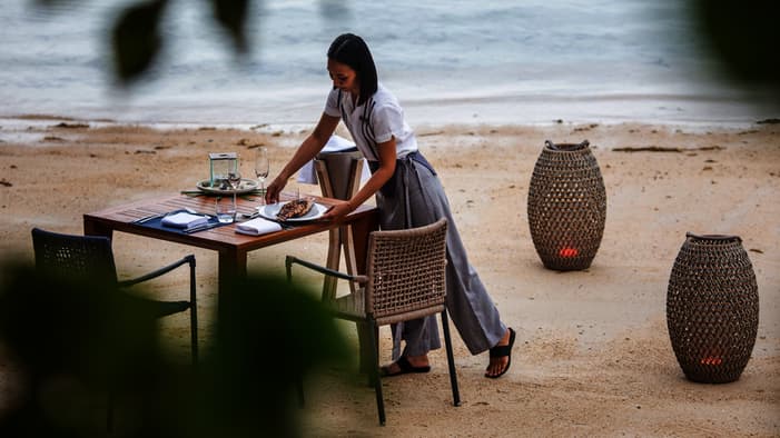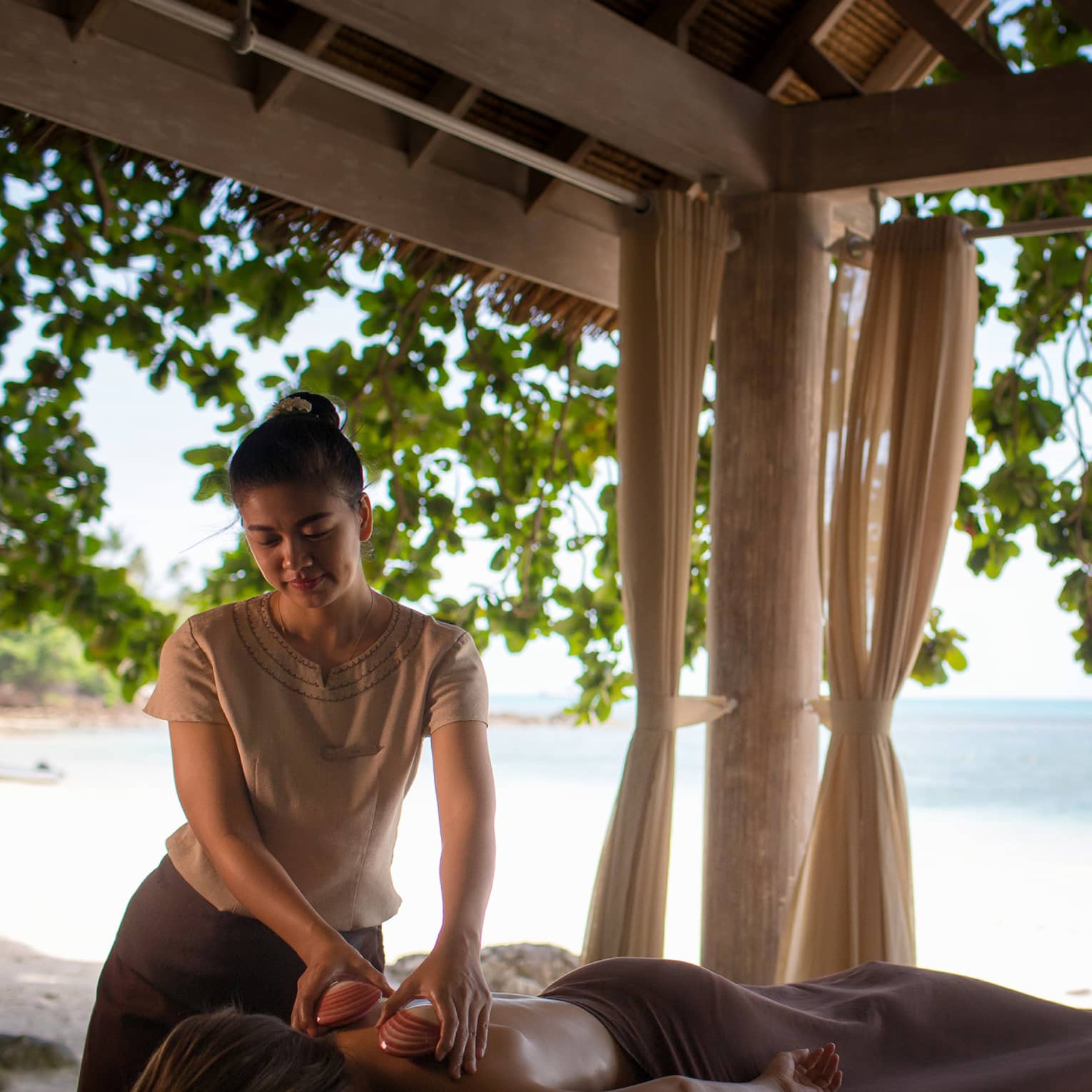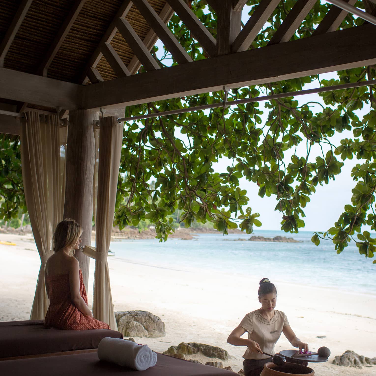 - Daily, 9:00 pm – 11:30 pm at the Private Beach SalaTHE SECRET NIGHT RITUALTune into the sound of lapping waves under the star-lit sky at the Private Beach Sala. Embark on a four-hands healing journey, combining Tibetan singing bowls and a warm lava shell massage by the sea, followed by a coconut and lotus petal bath in your private villa for complete relaxation. Monogrammed robes included. 150 minutes: THB 36,000 per couple. Advanced booking is recommended.