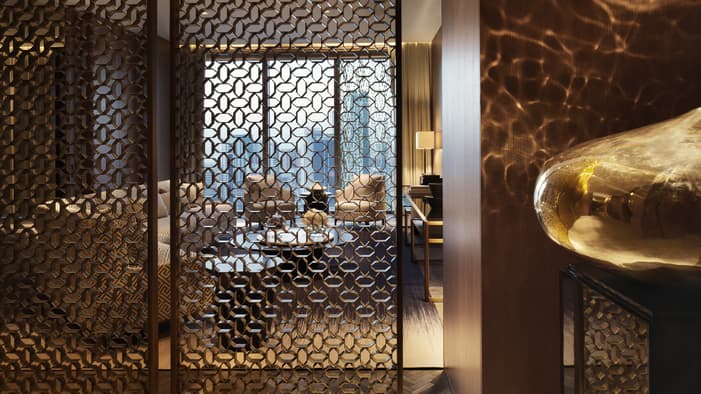 Soaring ceilings and elegant arches are inspired by the beauty of traditional Arabian design, while the geometric panelled ceilings, clouds of dangling lights and eye-catching use of patterns add contemporary touches that make the Four Seasons a stunning design icon in the city.