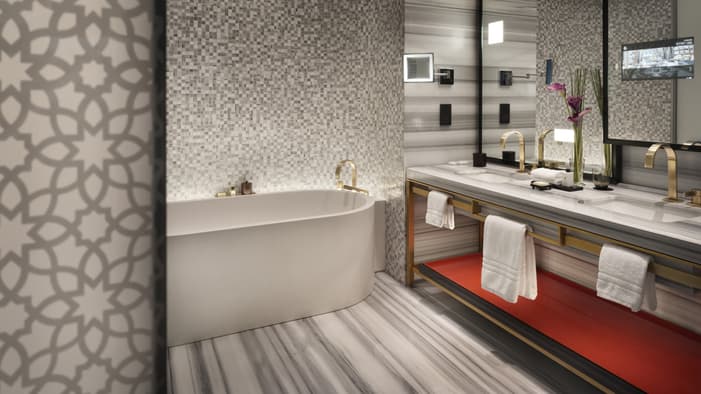 Everywhere you turn, technology is working to make your visit as smooth and comfortable as possible. Bedside tablets control room lighting and provide entertainment, bathroom mirrors boast built-in televisions and there are plenty of charging ports to make sure you're always connected.