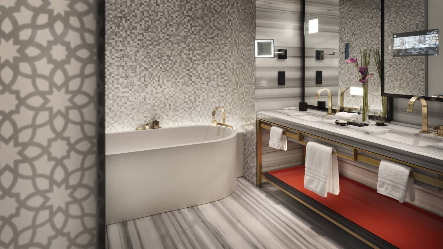 - 165-centimetre (65-inch) flat-screen TVs in guest rooms and suites; 165- to 190-centimetre (65- to 75-inch) flat-screen TVs in specialty suites