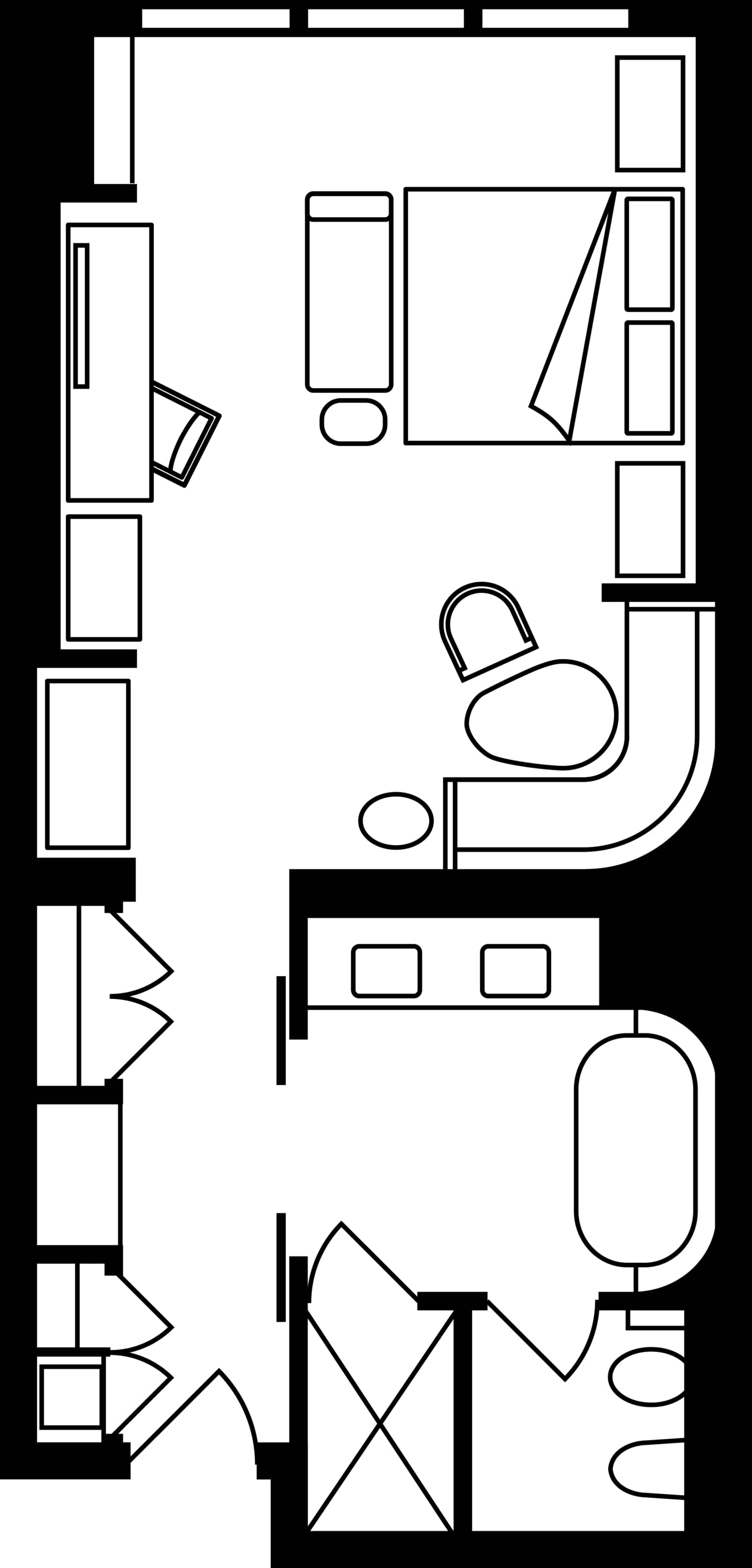 - Dividing door to create separate private space in all suites