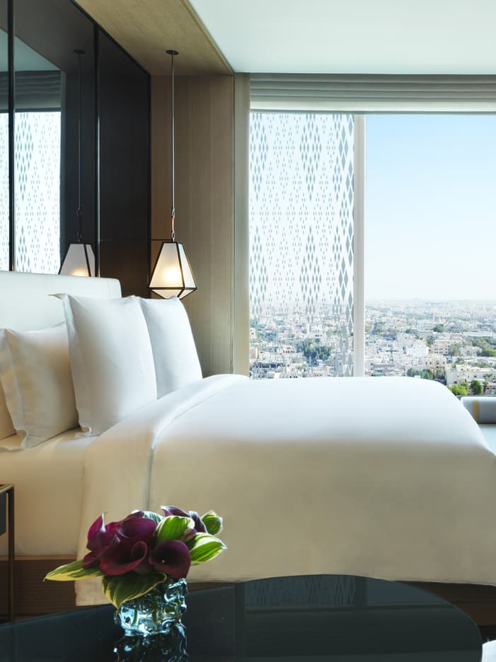 Elevated by soaring 3.5-meter (11.5-foot) ceilings, adorned with curved sofas and graced by herringbone oak floors, our Park Rooms exude an aura of suite-like elegance with elements that harmonize with the panoramic Al Shaheed Park view. The rooms’ atmosphere is further enriched by the burnt-orange lacquer panels, creating a cosy and modern feel that complements the natural beauty outside.