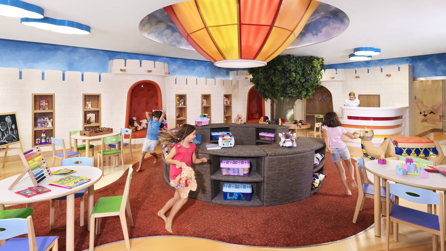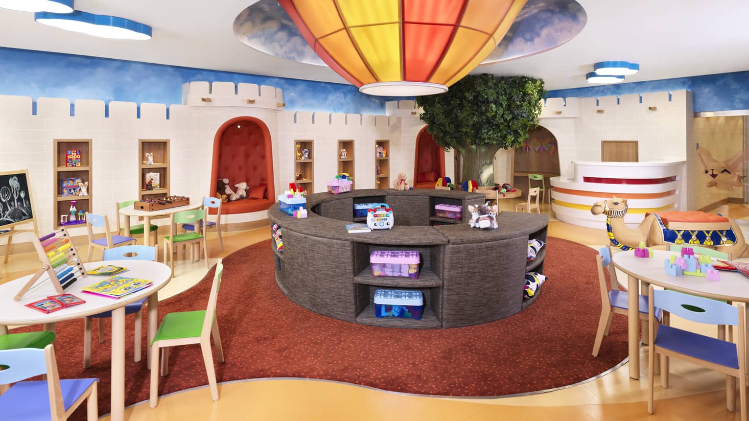 A desert safari-themed play space awaits young visitors at Fereej Club