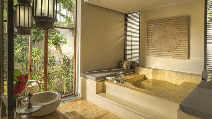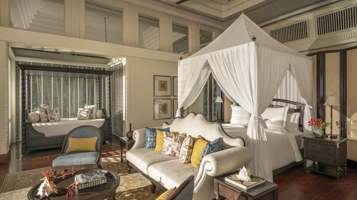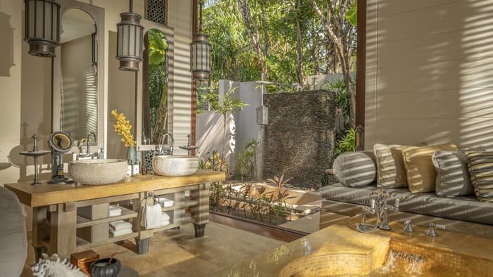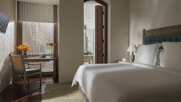 Soaring wood-beamed ceilings and breezy indoor-outdoor living spaces show off the finest in Malay craftsmanship, while hammam-style bathtubs and ogee-arched doorways lend a bit of Moorish flare to our unique accommodations.