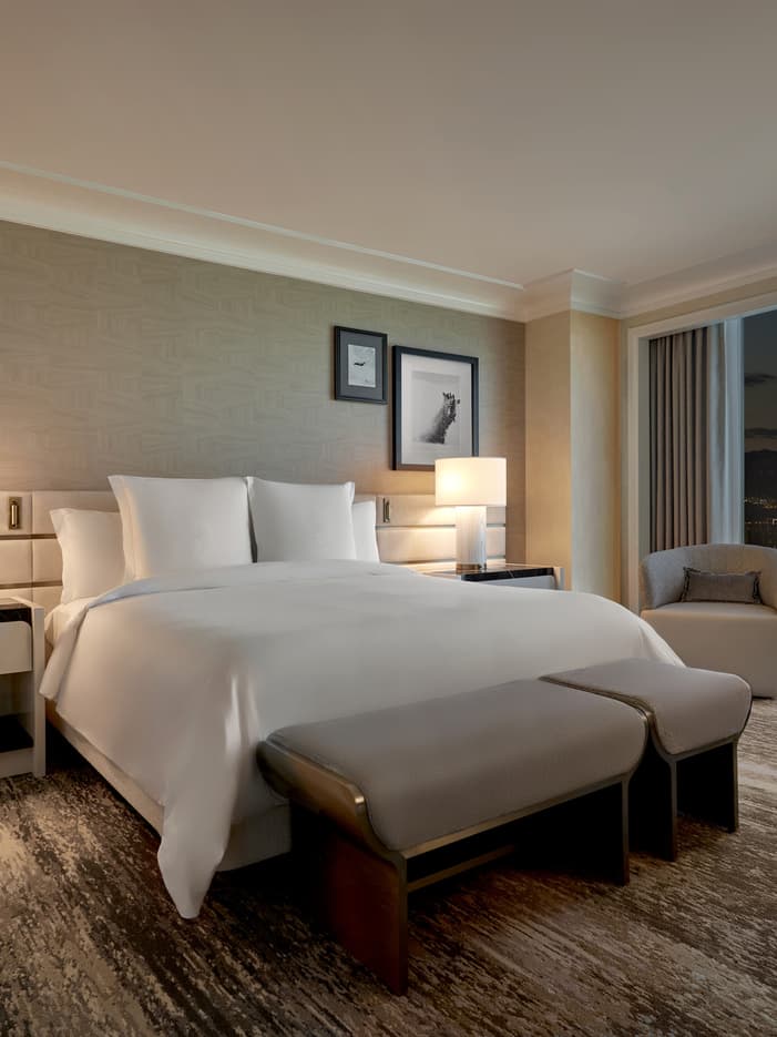 Emulating the morning light of the Mojave Desert, reflecting the dramatic beauty and grandeur of the Hotel’s natural surroundings