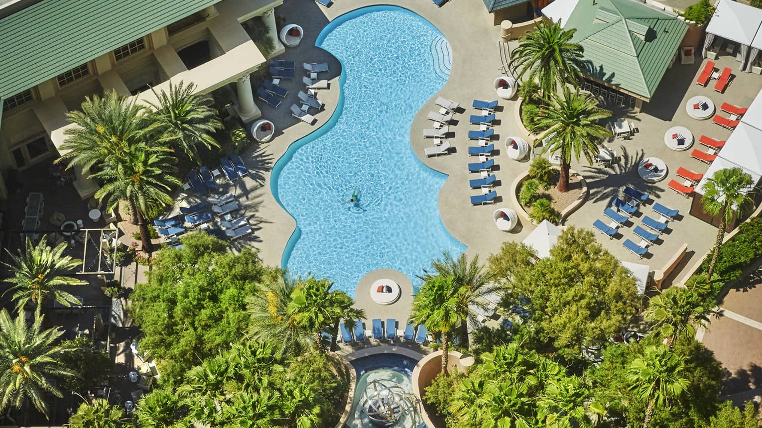 Take in views of the lush pool gardens below from this intimate balcony, ideal for an outdoor wedding ceremony or cocktail reception.