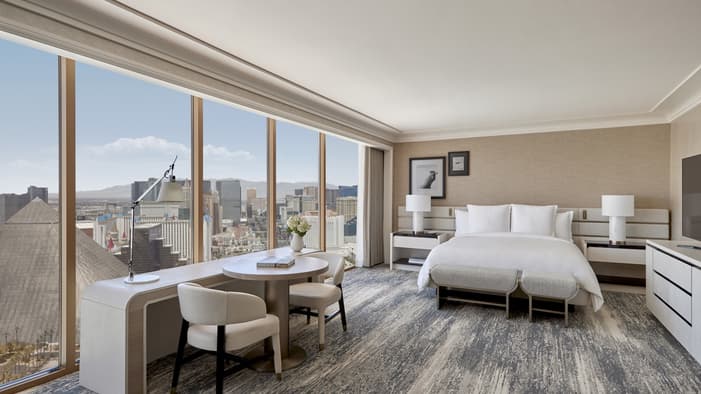 Enter through the spacious foyer and take in the spectacular views of the Las Vegas Strip and the surrounding desert in our most desirable, oversized guest rooms.