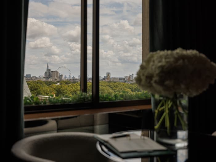 In-Suite RelaxationBespoke furnishings and handcrafted details reflect refined craftsmanship, blending indoor luxury with the calm of the outdoors – a perfect Mayfair hotel retreat.