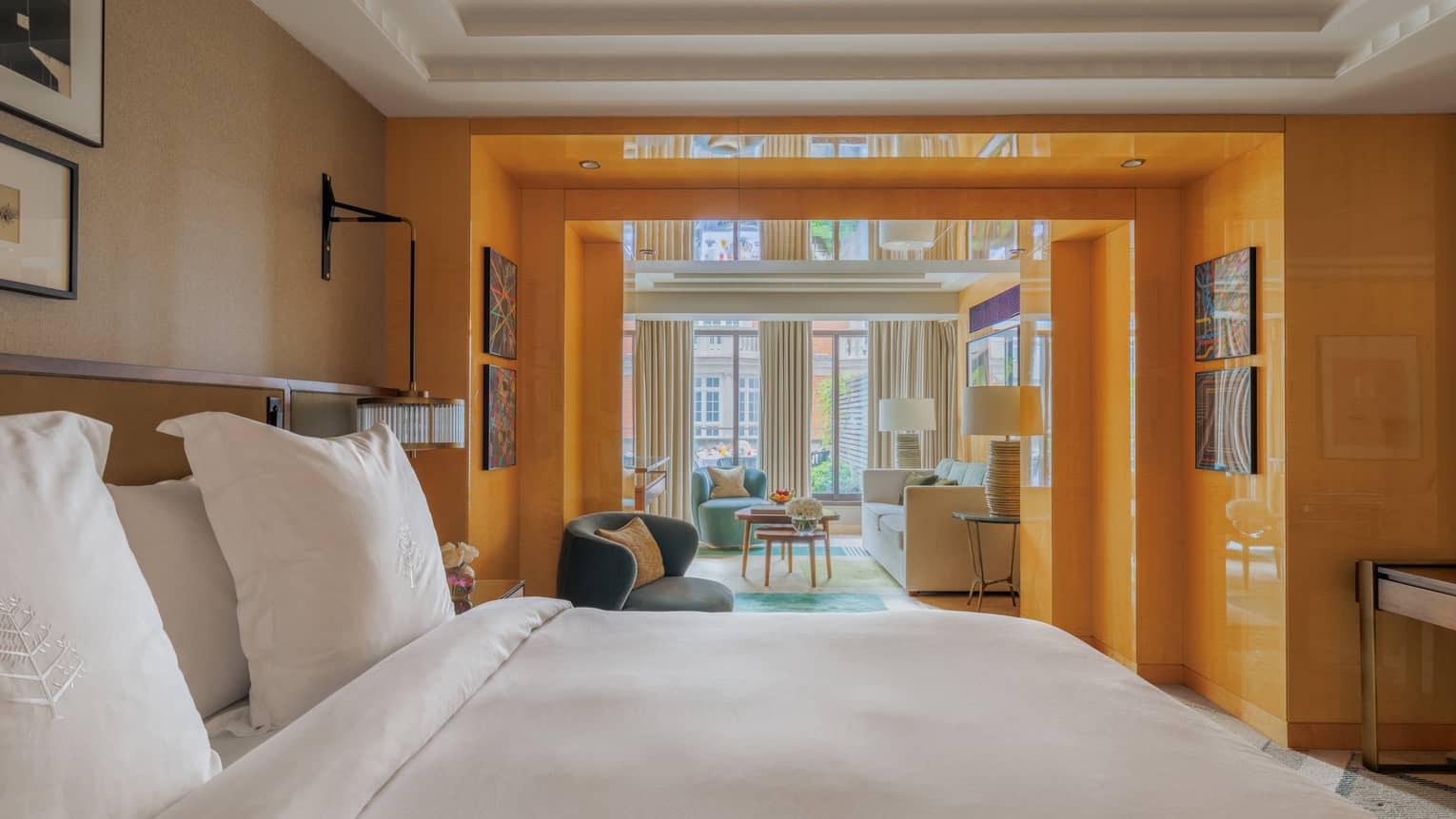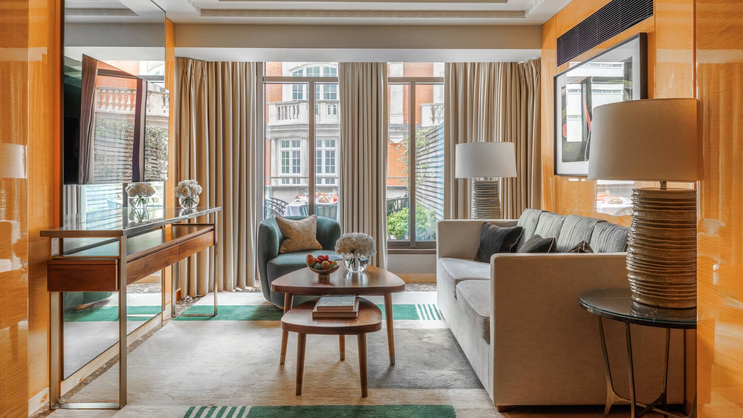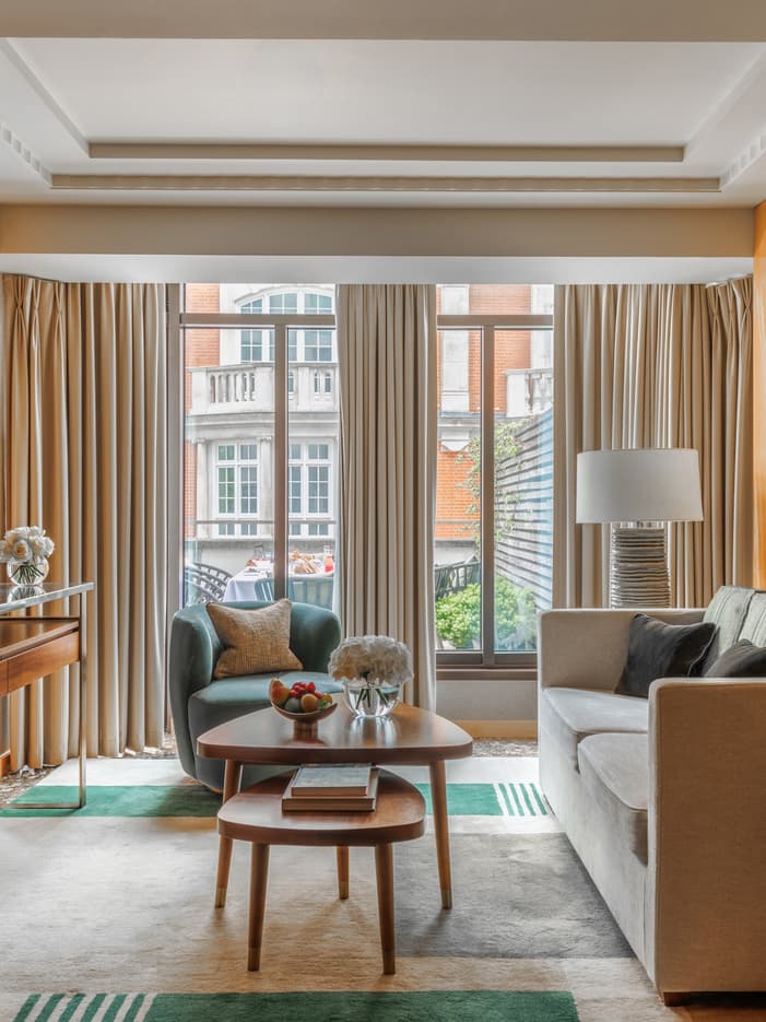 Thoughtfully designed for the modern traveller, these spacious open-plan suites blend comfort and sophistication. Relax in the elegant seating area or step out onto your landscaped terrace, where views of Mayfair and the London skyline provide a serene backdrop to your stay.