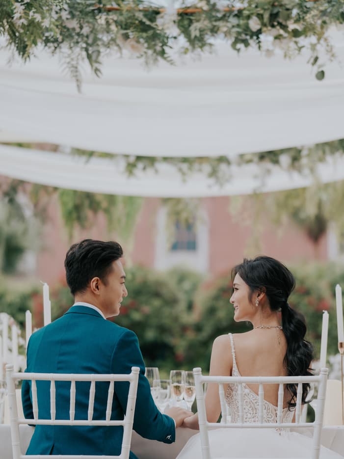 A lush garden on a verdant expanse set against the backdrop of our Hotel's stunning façade provides a majestic entrance. As you make your way down the aisle, a cascading fountain in the background enhances the serene atmosphere. Delight your guests with authentic Asian and Western delicacies before celebrating into the night with live entertainment and a custom wedding cake designed just for you.