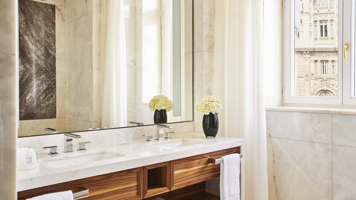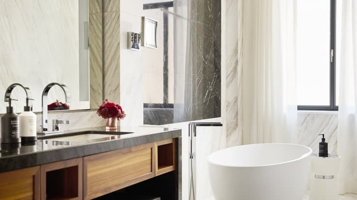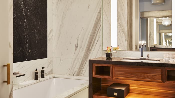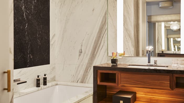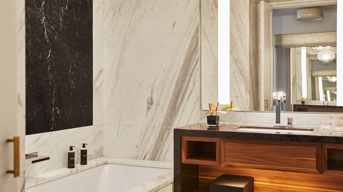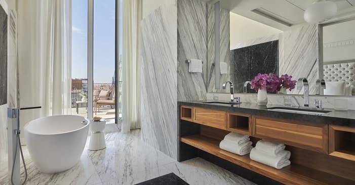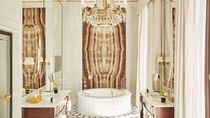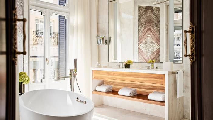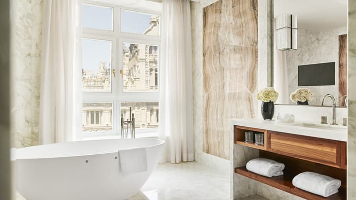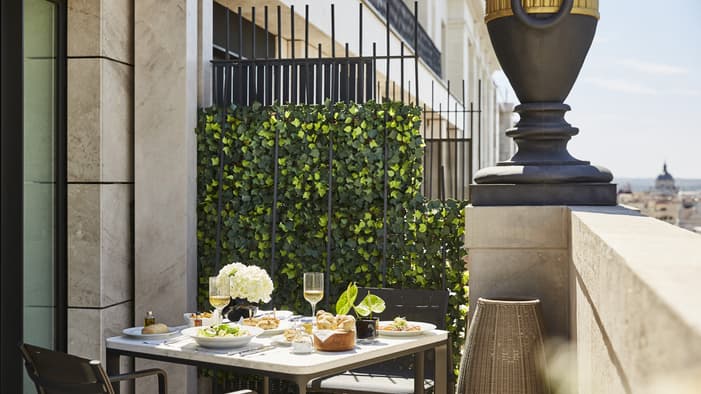 Rich in history and character, Four Seasons Hotel Madrid brings together seven different historic buildings – the oldest dating back to 1887 – resulting in an interior filled with unique discoveries. Among our 200 guest rooms and suites are many one-of-a-kind layouts. Some are designed on two levels connected by a short staircase. Some feature step-out balconies or spacious private terraces – ideal for enjoying Madrid’s warm weather and views. Throughout the building, you’ll find more than 3,700 original artefacts – intricate stone floors, fireplaces and large brass door pulls – creating a connection to history rarely seen in a contemporary hotel.