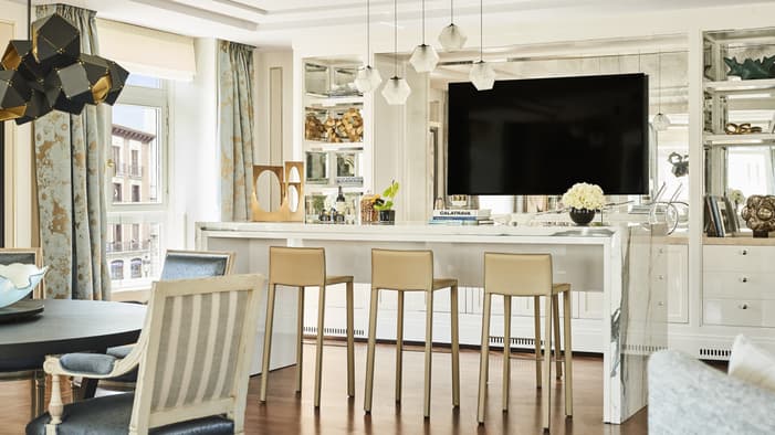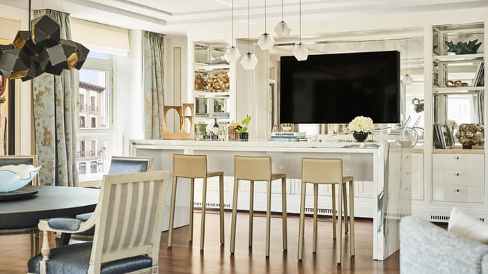 Our luxury suites in Madrid are perfect for travelling with family and friends or for extended stays. They feature separate living and sleeping areas, providing the extra space you need to entertain or unwind. Discover our family and friends suites, ideal for families or groups, offering unique adjoining rooms with multiple bedrooms for added privacy and comfort during your stay.
