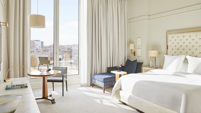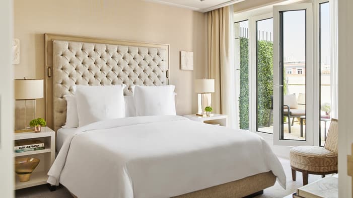 Discover our luxury hotel rooms and suites in Madrid at Four Seasons. Offering separate living and sleeping areas, our hotel suites in Madrid are perfect for extended stays or travelling with family and friends. Enjoy the utmost comfort and privacy in our stylish guest rooms, providing a peaceful retreat during your stay.
