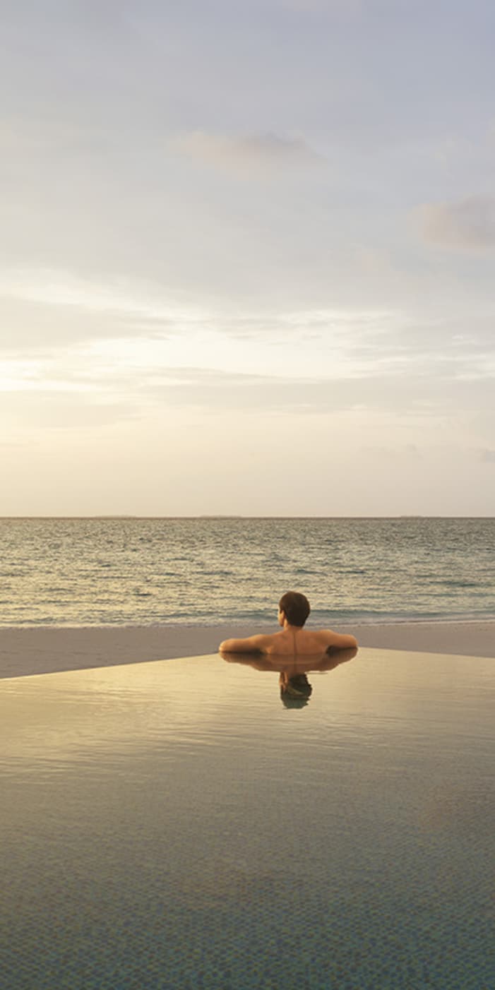 Bespoke treatments at The Ocean of Consciousness Spa. Yoga, meditation and pranayama on your vast empty beach. Consultations with our on-call Ayurvedic physicians, acupuncturists and Rossano Ferretti Hair consultants. Or simply dolphin-watching from your poolside lounge. At Voavah, feeling good comes naturally.2 / 4